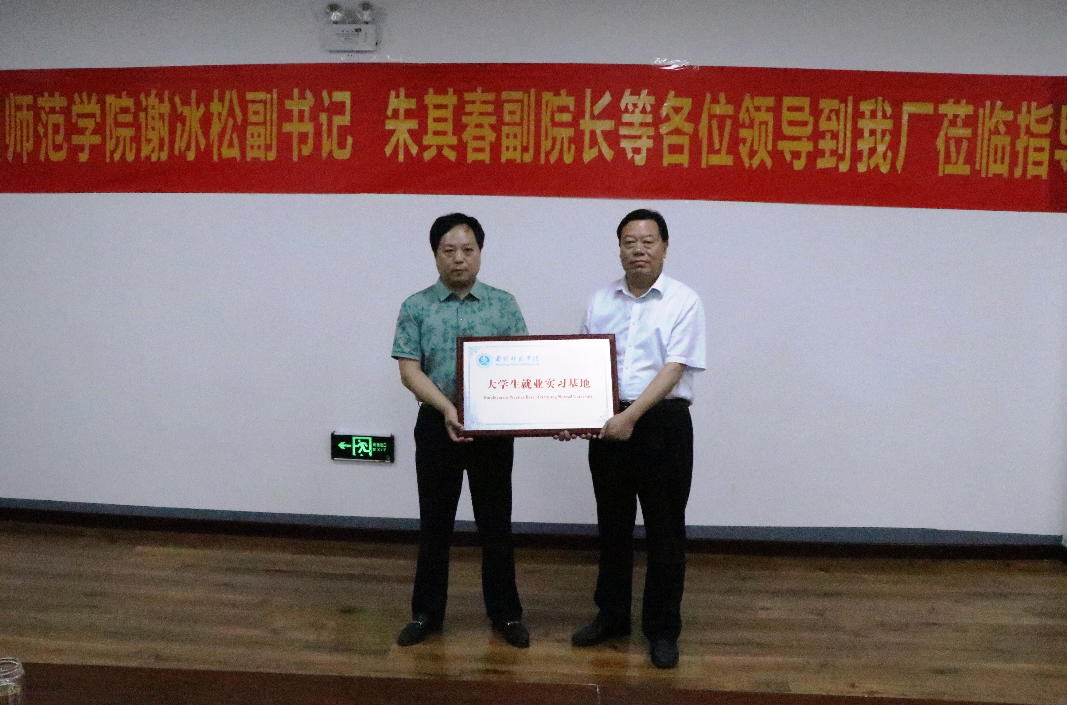 谢冰松为唐河县铭达纺织有限公司授就业实习基地牌匾。(编审 张君明)