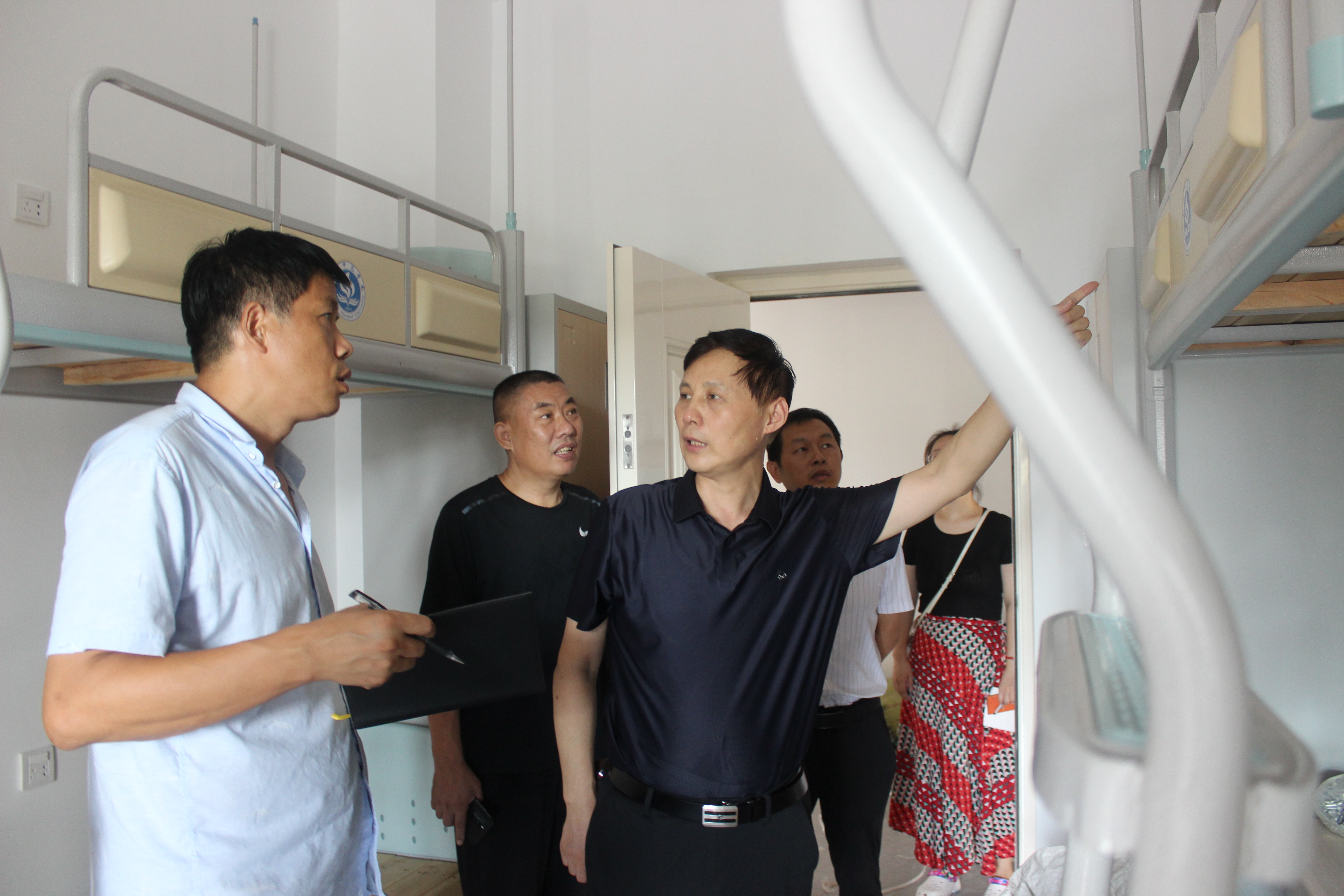 熊新忠一行先后到学生食堂、学生公寓、运动场、逸夫楼、东区综合楼、图书馆等场所,深入了解工程施工情况、食堂宿舍开学准备情况。熊新忠在现场要求,未完工项目要倒排工期,抓紧施工,确保不耽误正常开学;新装床铺一定要保证学生安全,并尽可能方便学生生活。