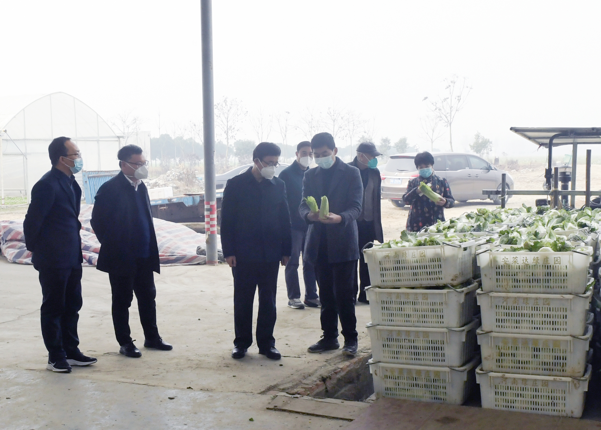 3.实地查看大棚蔬菜基地