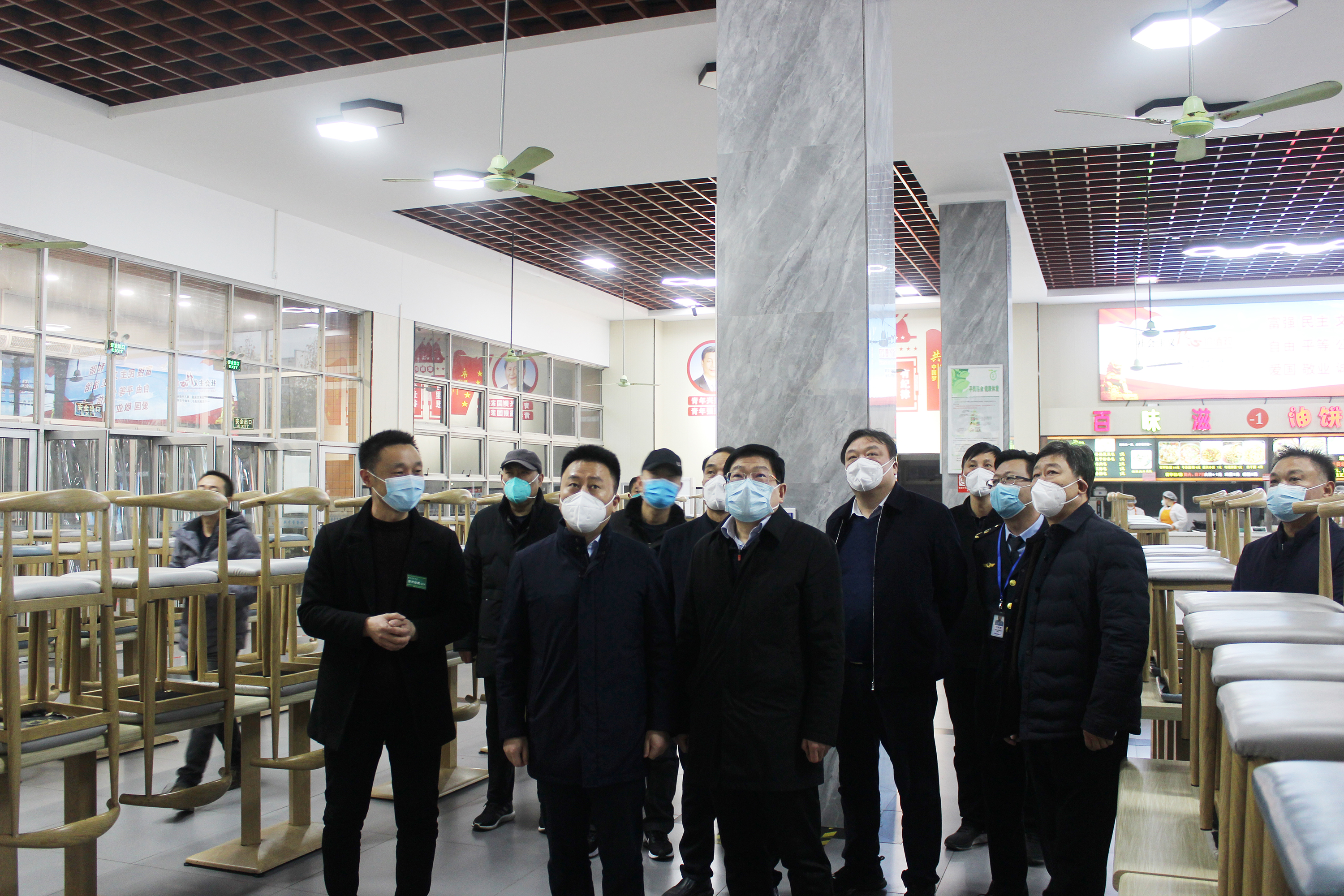 刘江认真听取了天游官网关于落实食品安全主体责任体系的汇报,实地查看了中区学生食堂的各个档口、配菜间、操作间、洗消间、饭菜价格、学生就餐环境等,针对食堂操作流程记录、食品成品留样、原料购进台账、食堂疫情防控台账等工作进行了严格细致的督导检查。