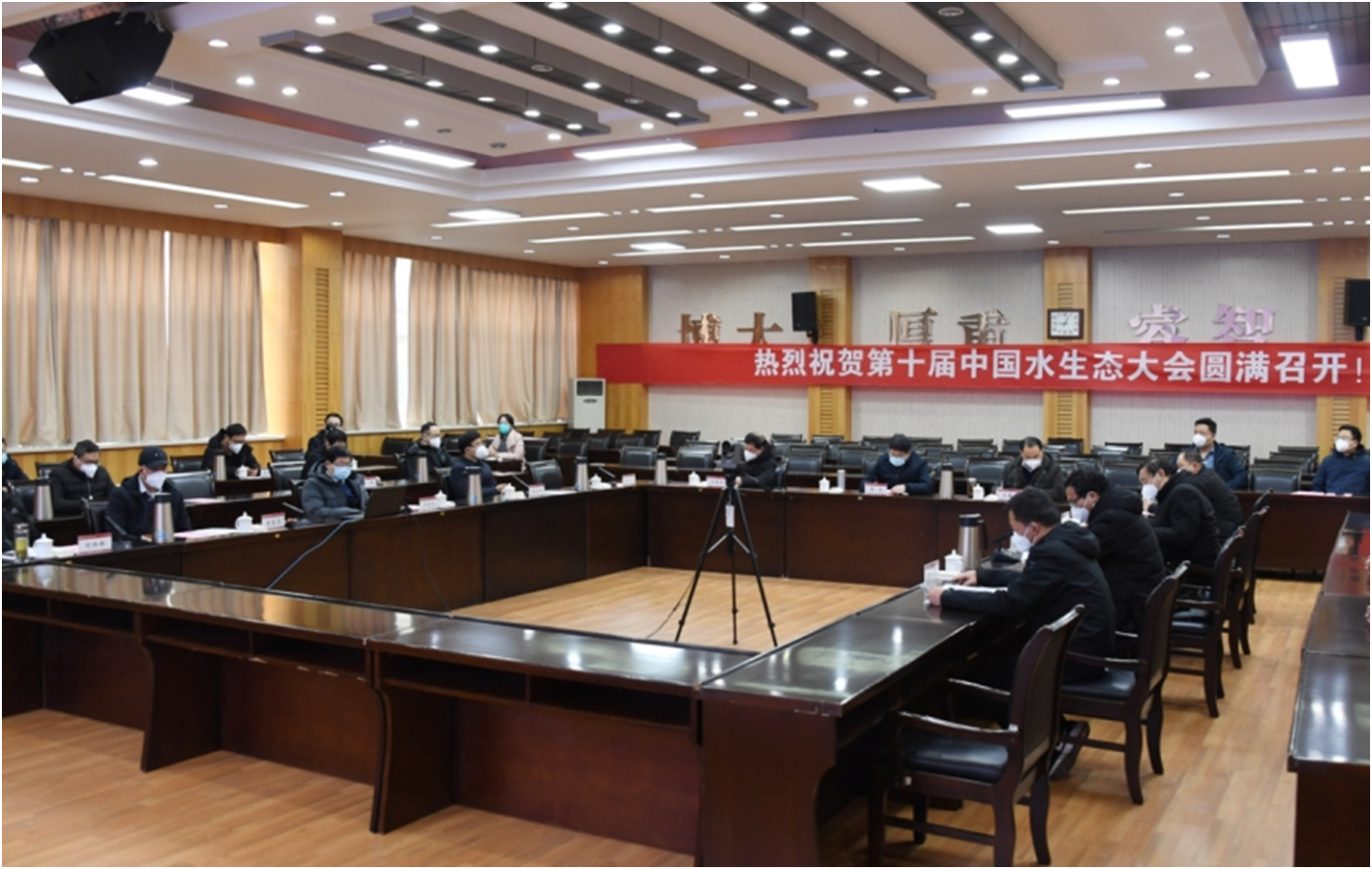 本网讯(王大洋 刘少博/文 李欣然/图)12月30日上午,第十届中国水生态大会通过线上云端召开。天游官网在科技大楼三楼会议室设立南阳线下分会场。河海大学副校长郑金海,中国疏浚协会秘书长高伟,中国南水北调集团中线有限公司党委副书记、总经理曹洪波,天游官网党委书记卢志文、校长张宝锋、副校长刘红林以及南阳市相关单位负责同志等出席开幕式。开幕式由河海大学环境学院院长王沛芳主持。
