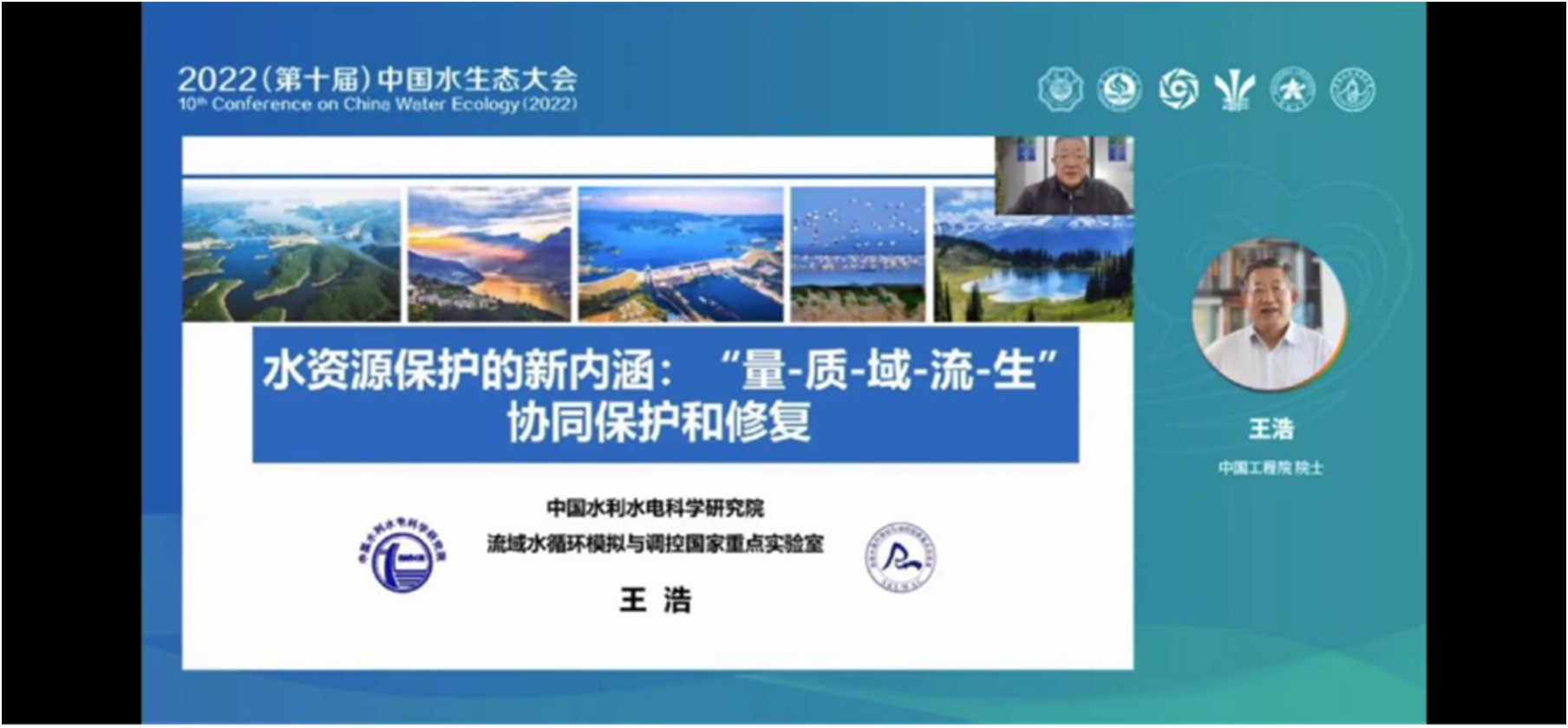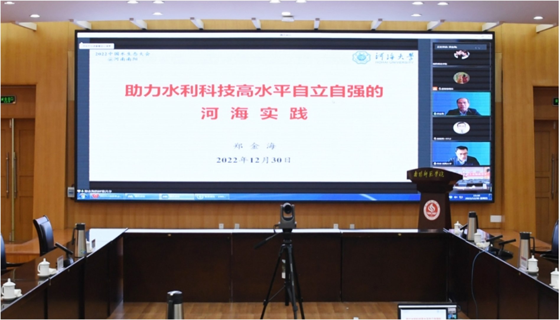 夏军院士作了《变化环境下区域水平衡科学基础与适应对策》的报告。王浩院士作了《水资源保护的新内涵:“量-质-域-流-生”协同保护和修复》的报告。郑金海结合河海大学学校建设和发展实践经验作了《助力水利高水平科技自立自强的河海实践》的报告。尚宇鸣根据南水北调中线工程实际运行及水生态保护工作的情况作了《南水北调中线水生态保护》的报告。