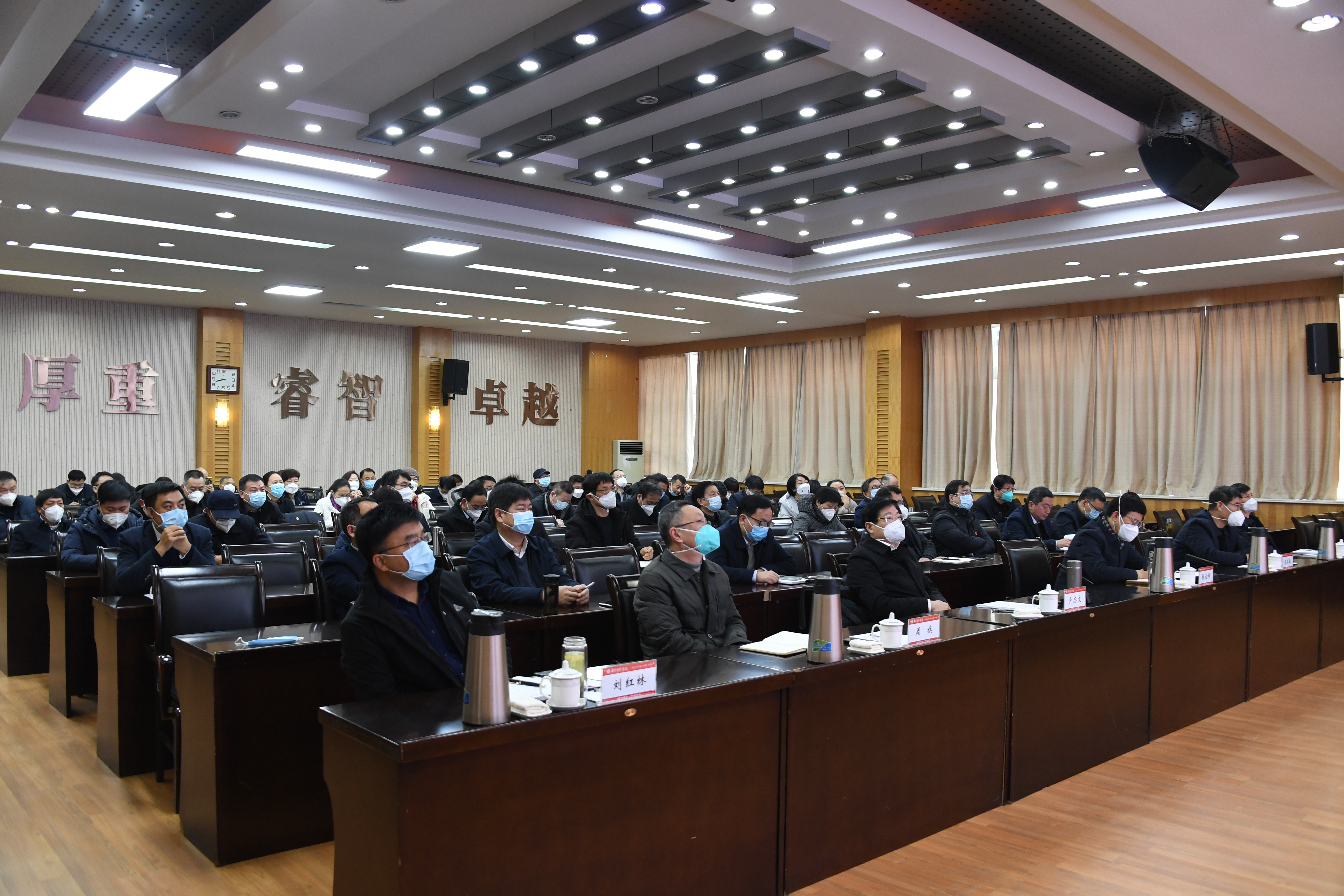 校长张宝锋讲话。他高度肯定了全校各级党组织在学校党委领导下以高质量党建推动高质量发展取得的成绩,并从党的二十大精神学习宣传、省委巡视整改、目标管理方案制定、国家基金项目论证与申报、研究生学位点增设申报与招生考试试卷评定、高层次人才引进、假期安全与稳定、后勤保障、重点项目推进等方面,安排部署了寒假期间的主要工作。