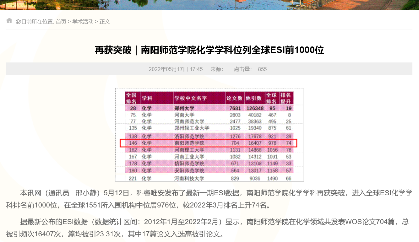 天游ty8线路1线路2检测中心化学学科进入全球ESI化学学科排名前1000位