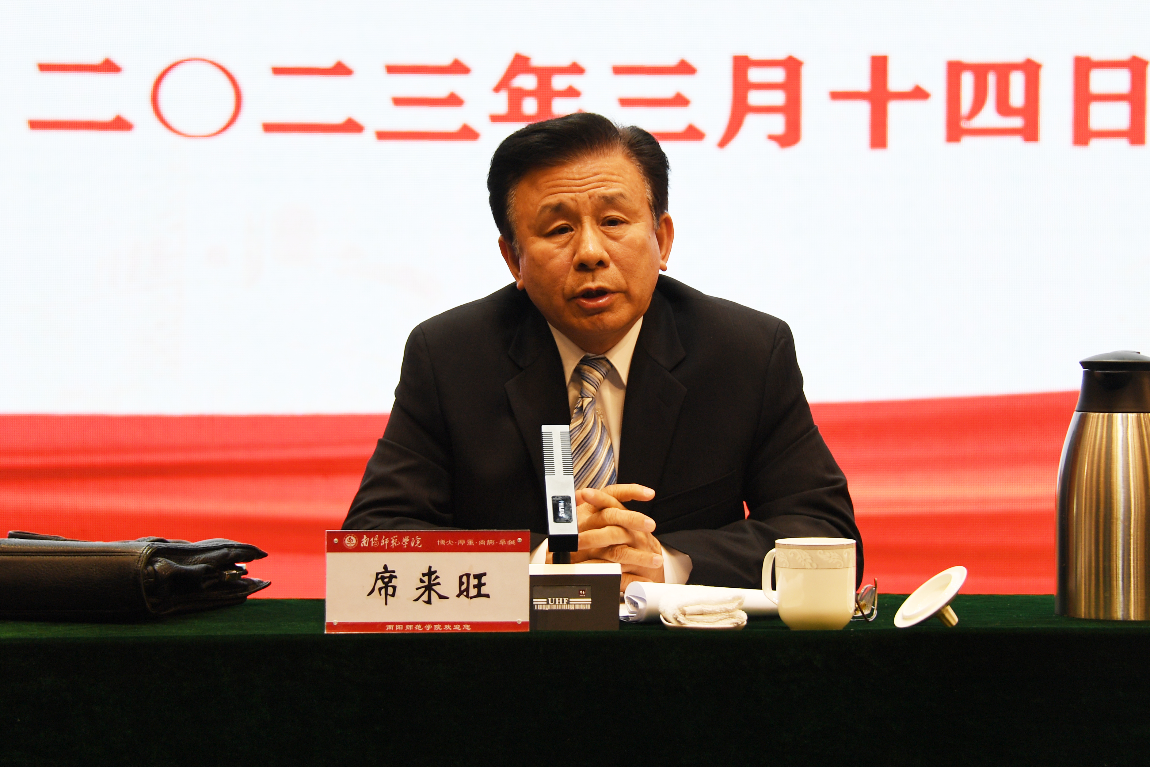本网讯(侯正刚/文 崔雅雯 曹艺鹏/图)3月14日下午,天游ty8线路1线路2检测中心党委理论学习中心组(扩大)在音乐厅举行“学习贯彻党的二十大精神”专题报告会。中国资深驻外记者与知名国际问题研究专家席来旺教授应邀来校作“学习贯彻党的二十大精神”专题辅导报告。全体校领导,全体中层干部和思政课教师、辅导员、学生代表参加。校党委书记卢志文主持报告会。