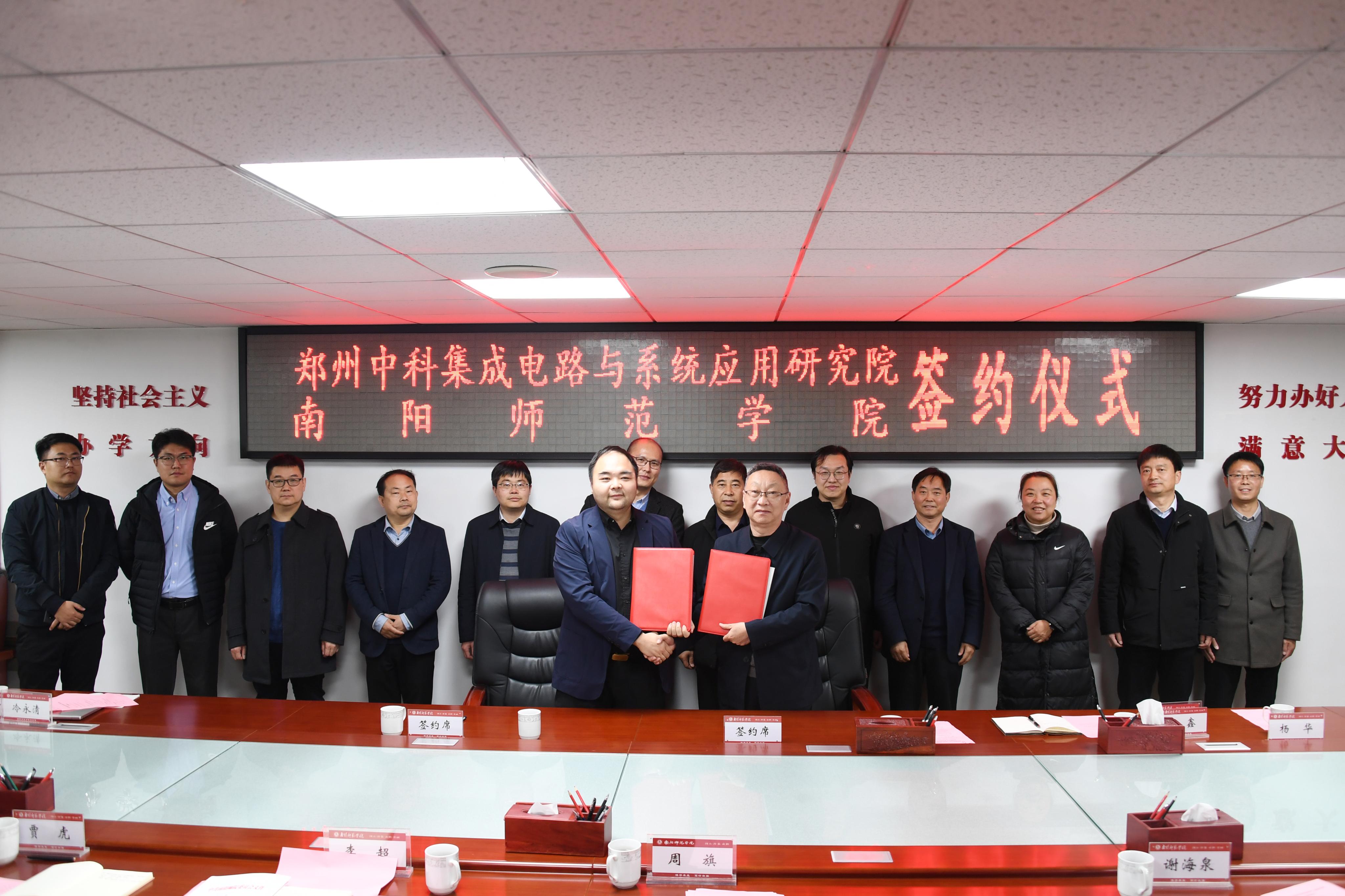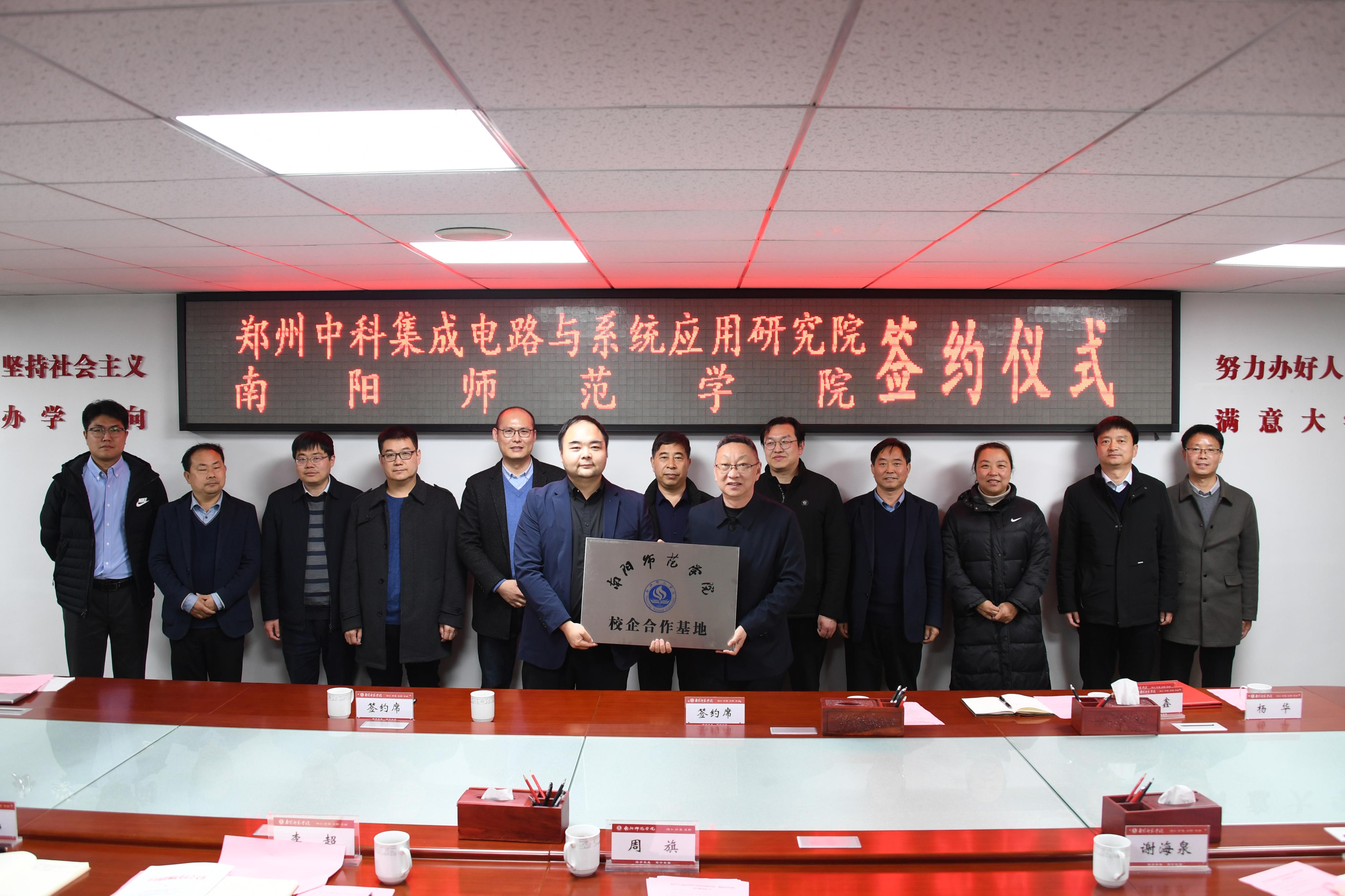 本网讯(赵清韬 惠明/文 杨毅鑫 姜智源/图)3月16日下午,天游官网与郑州中科集成电路与系统应用研究院(简称研究院)校企合作签约暨授牌仪式在办公大楼三楼会议室举行。研究院院长邱昕一行及南阳市科技局相关科室负责人,天游官网副校长周旗出席签约仪式。教务处、科技处、创新创业学院、机电工程学院、计算机科学与技术学院、纳米器件与系统集成研究院等相关负责同志参加。仪式由校企合作办公室主任李超主持。