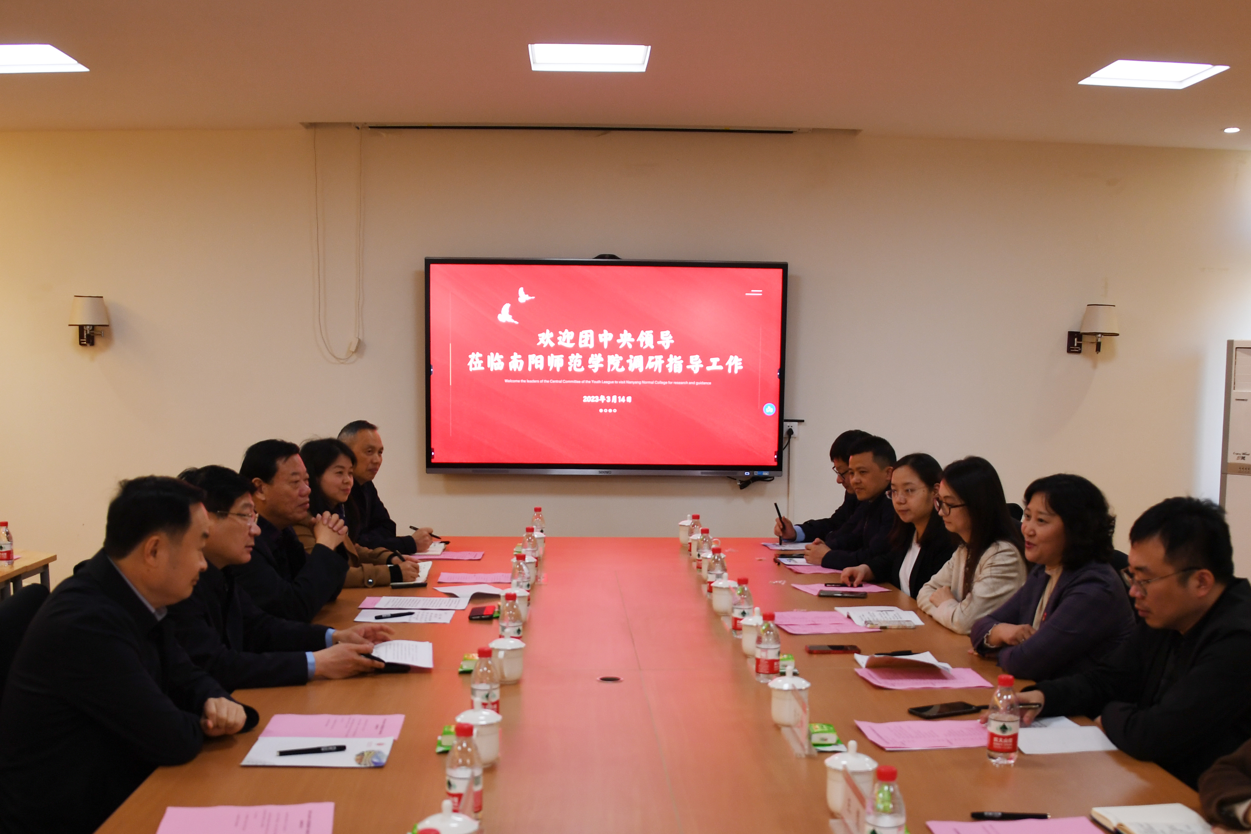 本网讯(通讯员 李珂 杨婷/文 崔雅雯 曹艺鹏/图)3月14日上午,团中央少年部副部长、全国少工委副主任夏新颜,中国青少年研究中心青年发展研究所副所长张晓冰,团中央少年部辅导员工作处胡范坤一行来天游官网调研。河南省少先队总辅导员、省少工委副主任王慧,共青团南阳市委副书记林丽等省市领导陪同。天游官网党委书记卢志文、党委副书记谢冰松出席座谈会。教育科学学院、校团委负责同志,小学教育专业教师、学生代表参加座谈。会议由谢冰松主持。