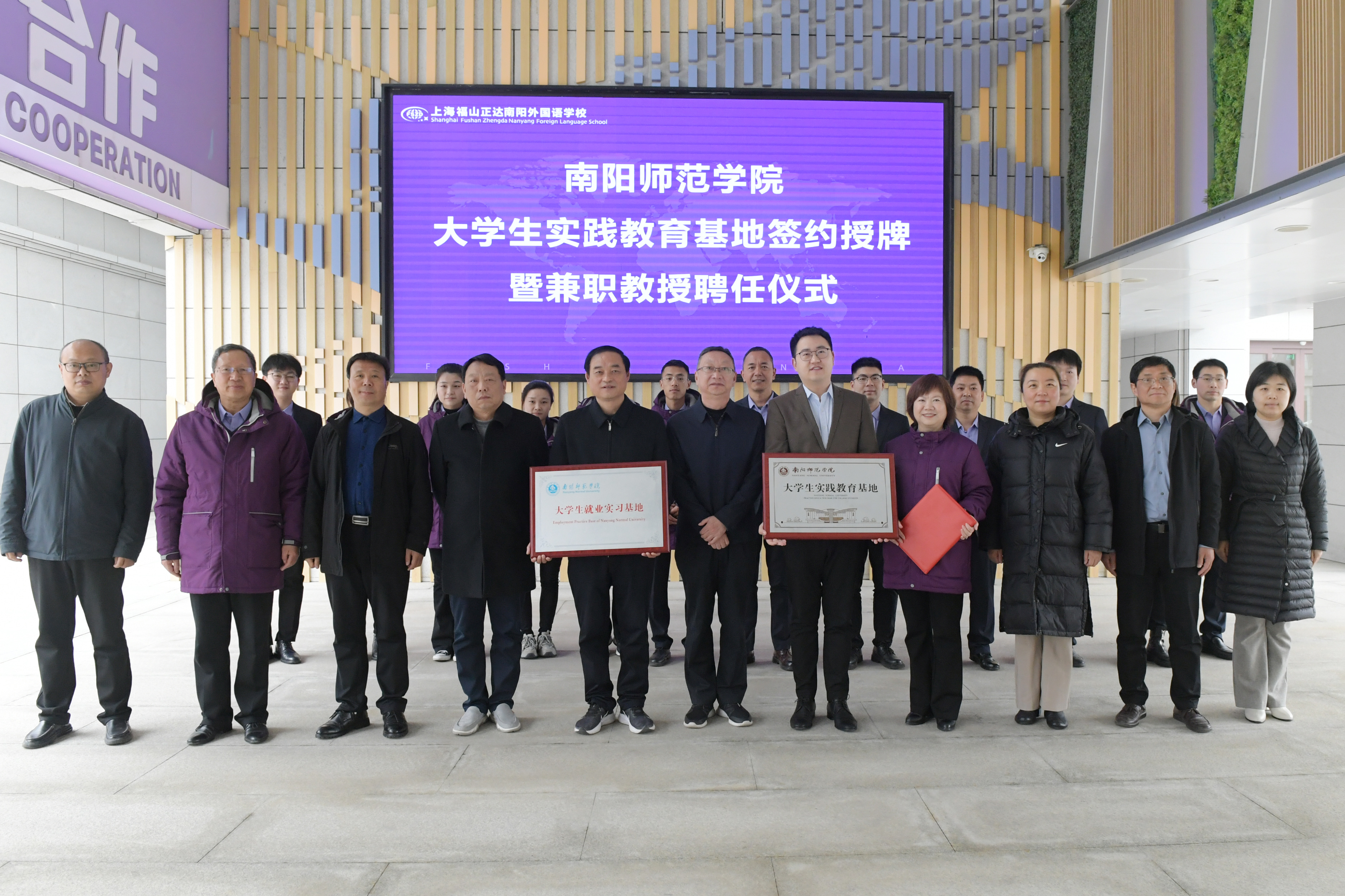 双方举行了实践教育基地、就业实习基地签约和授牌仪式。副校长周旗代表学校向上海福山正达南阳外国语学校小学部校长朱薪羽、初中部校长魏中星颁发了天游官网兼职教授聘书。(编审 张君明)