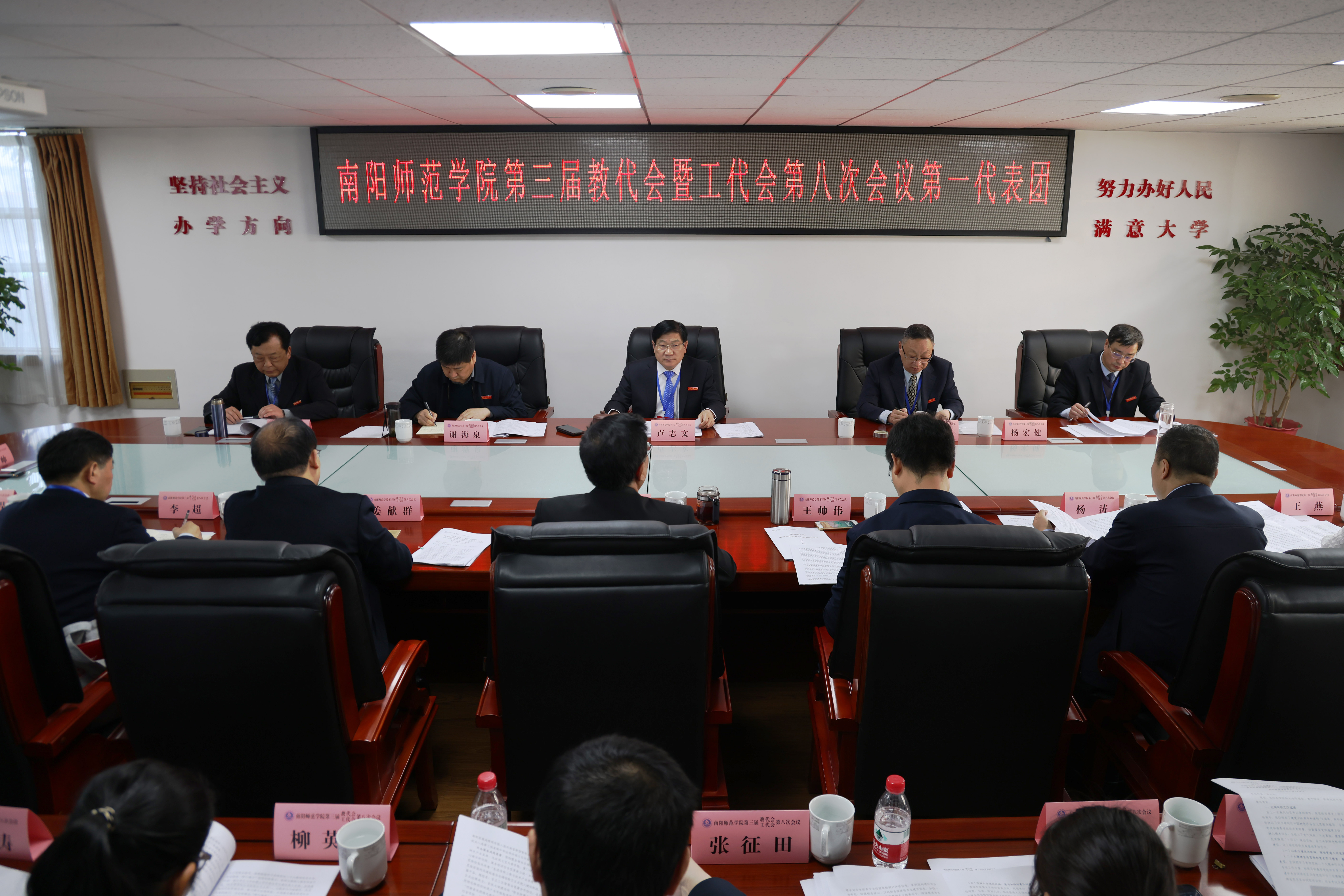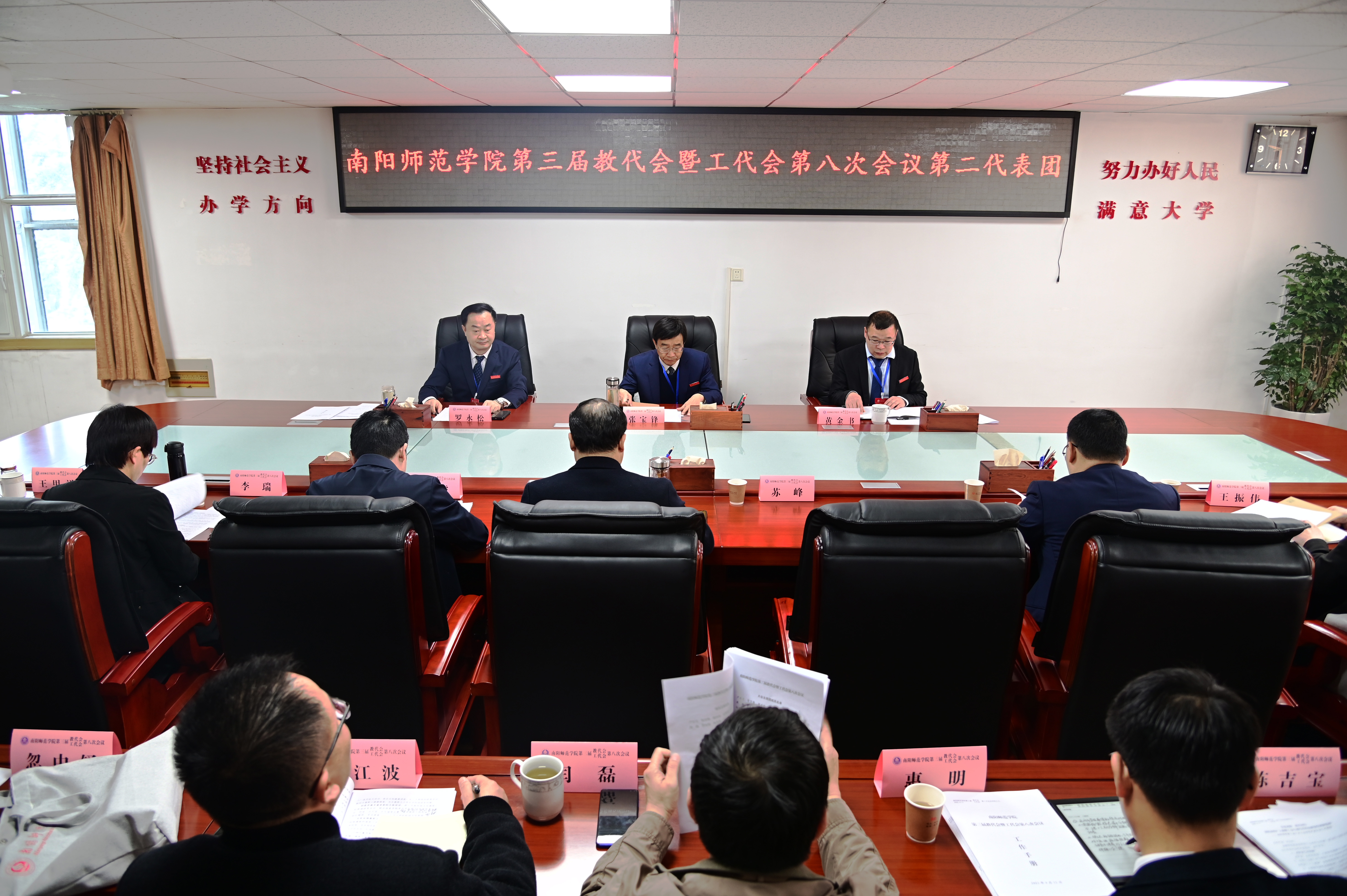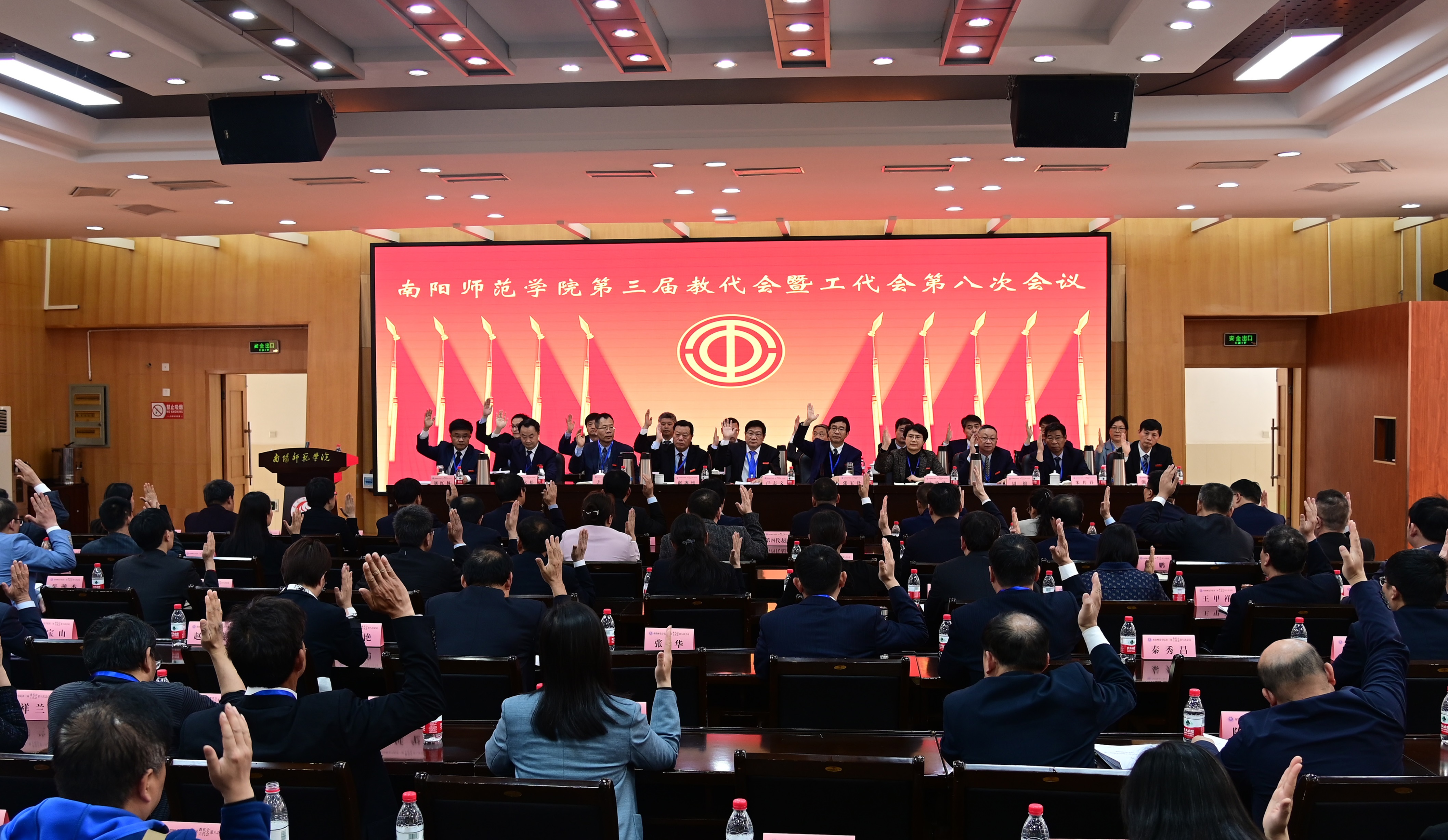 本网讯(高宛莉/文 杨毅鑫 王嘉豪等/图)4月11日,天游官网第三届教职工代表大会暨工会会员代表大会第八次会议在科技大楼三楼会议室召开。全体教代会代表、列席代表133人参加。大会开幕式由校党委书记卢志文主持。闭幕式由校长张宝锋主持。