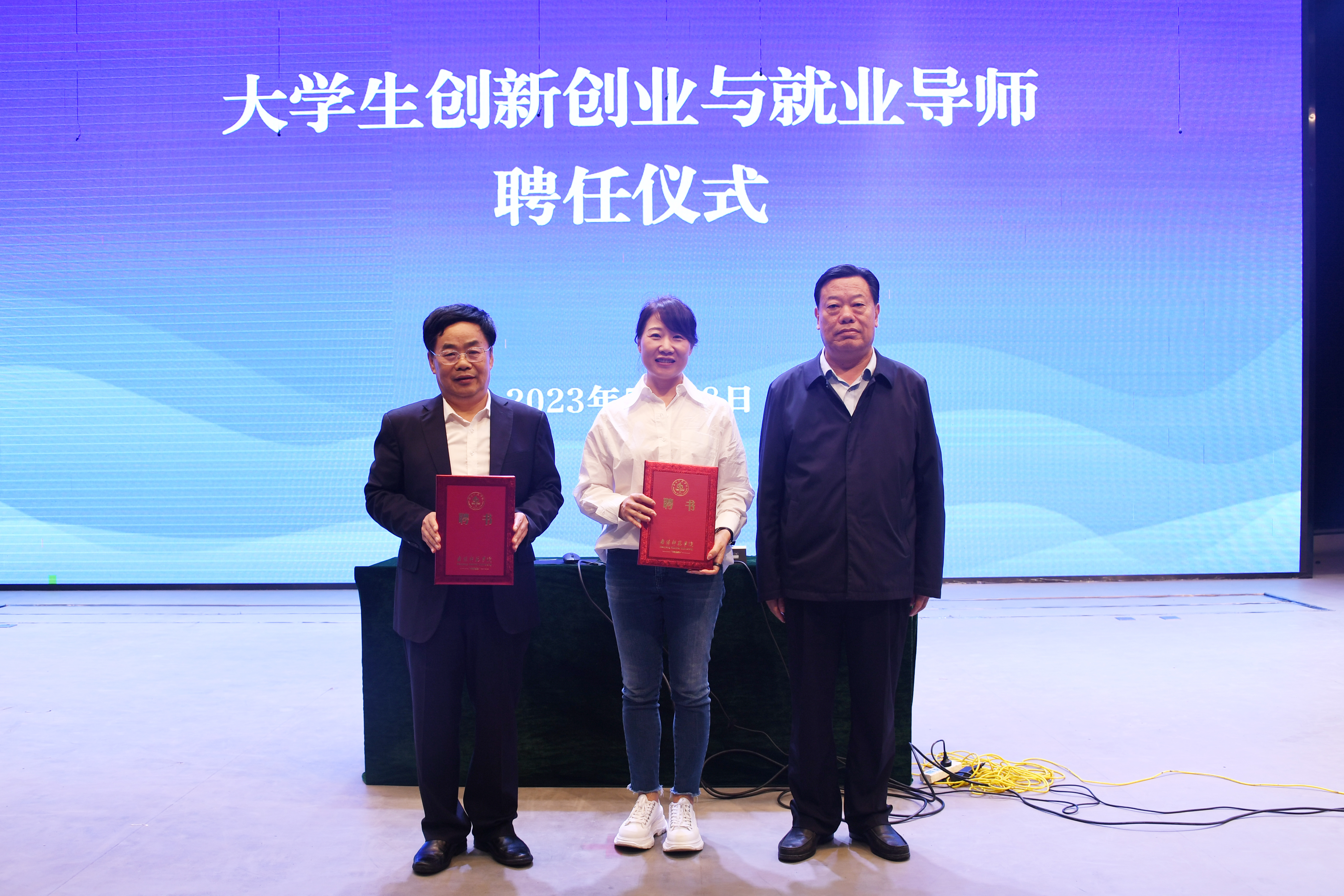 谢冰松向两位企业家颁发了大学生创新创业与就业导师聘书。