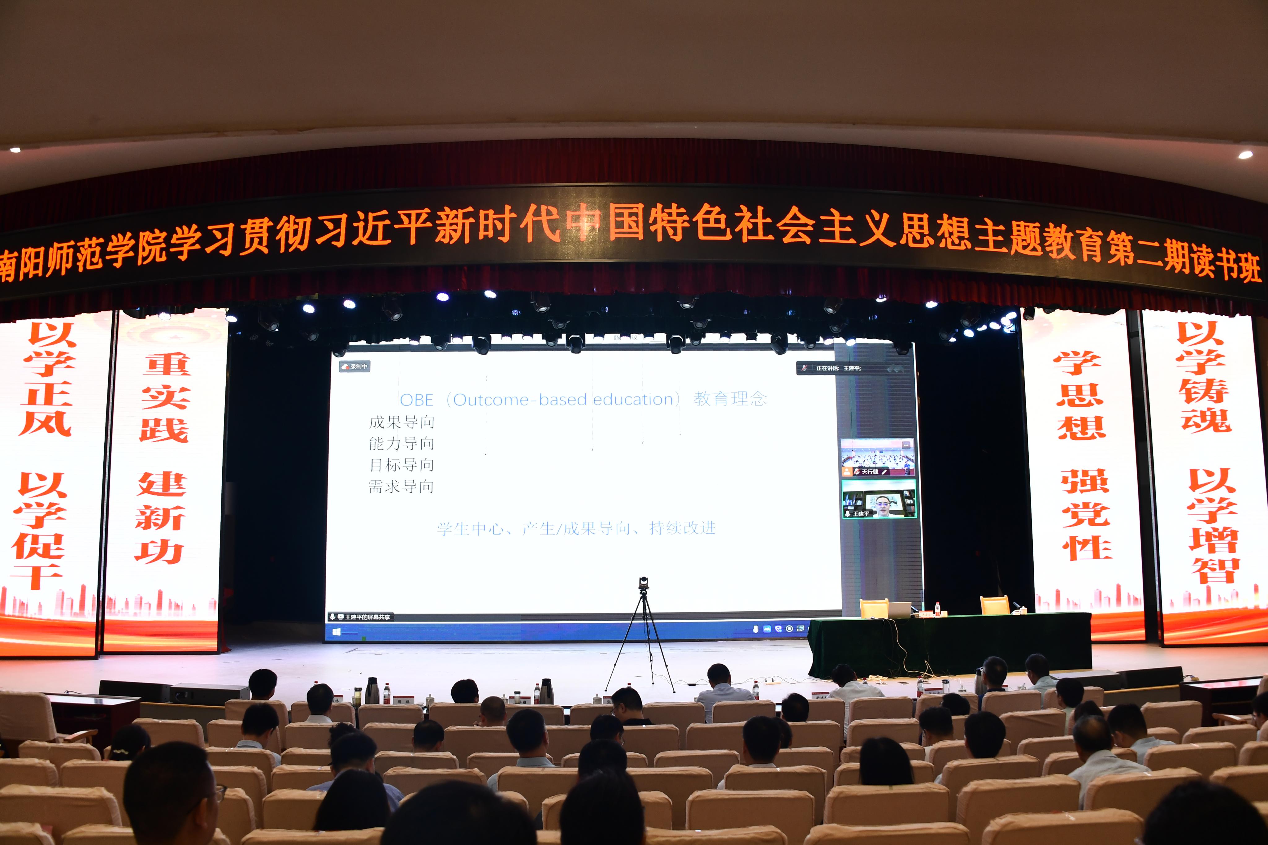华南师范大学博士生导师王建平教授应邀作专题报告。他以《基于OBE理念的专业建设与专业认证》为题,重点对加强专业建设需要制定的三个目标、明确的三对关系、建立的三种机制,提高专业认证质量需要重点把握的培养目标、课程评价、合作与实践、质量保障等内容,进行了深入解读。报告视野宏阔、内容丰富、阐释深入、针对性强,对于学校开展师范专业认证、迎接新一轮本科教育教学审核评估具有重要指导意义。