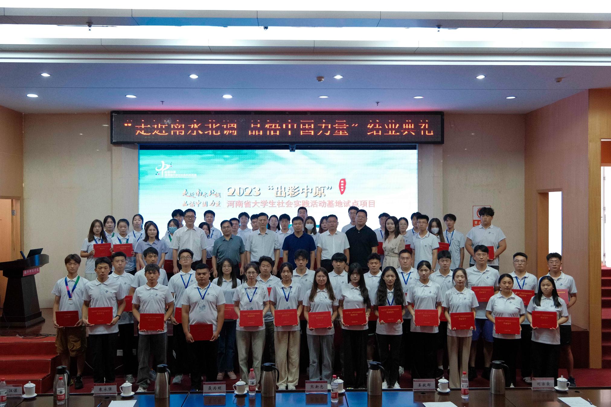 本网讯(陈欣 徐曼曼/文 田野 王明理/图)8月19日上午,2023年河南省“出彩中原”大学生社会实践活动基地试点项目——“走近南水北调 品悟中国力量”社会实践活动圆满结束。结业典礼在天游ty8线路1线路2检测中心图书馆报告厅举行。天游ty8线路1线路2检测中心副校长熊新忠,校心理健康教育与咨询中心党总支书记姜献群、校团委书记袁永强出席。学生处全体成员、师生代表及全体学员参加。典礼由学生处副处长薛江谋主持。