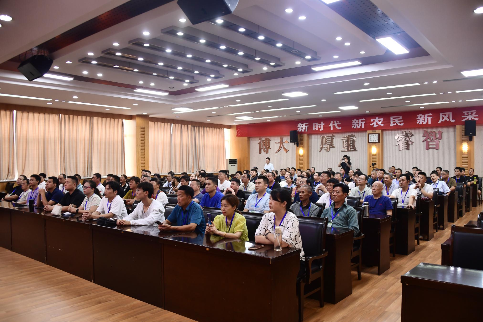 本网讯(杨转/文 王嘉豪/图)8月21日上午,河南省2023年高素质农民培育项目天游ty8线路1线路2检测中心新型农业经营与服务主体带头人能力提升(示范)第一期培训班开班仪式在科技大楼三楼会议室举行。天游ty8线路1线路2检测中心副校长周旗,南阳市农业农村局副局长张德,南阳市农业农村局科技教育科科长王志刚,校友办公室主任付中欣,以及全省安阳、许昌、信阳等地150名学员参加,开班仪式由南阳师院生命科学与农业工程学院党委书记杨涛主持。