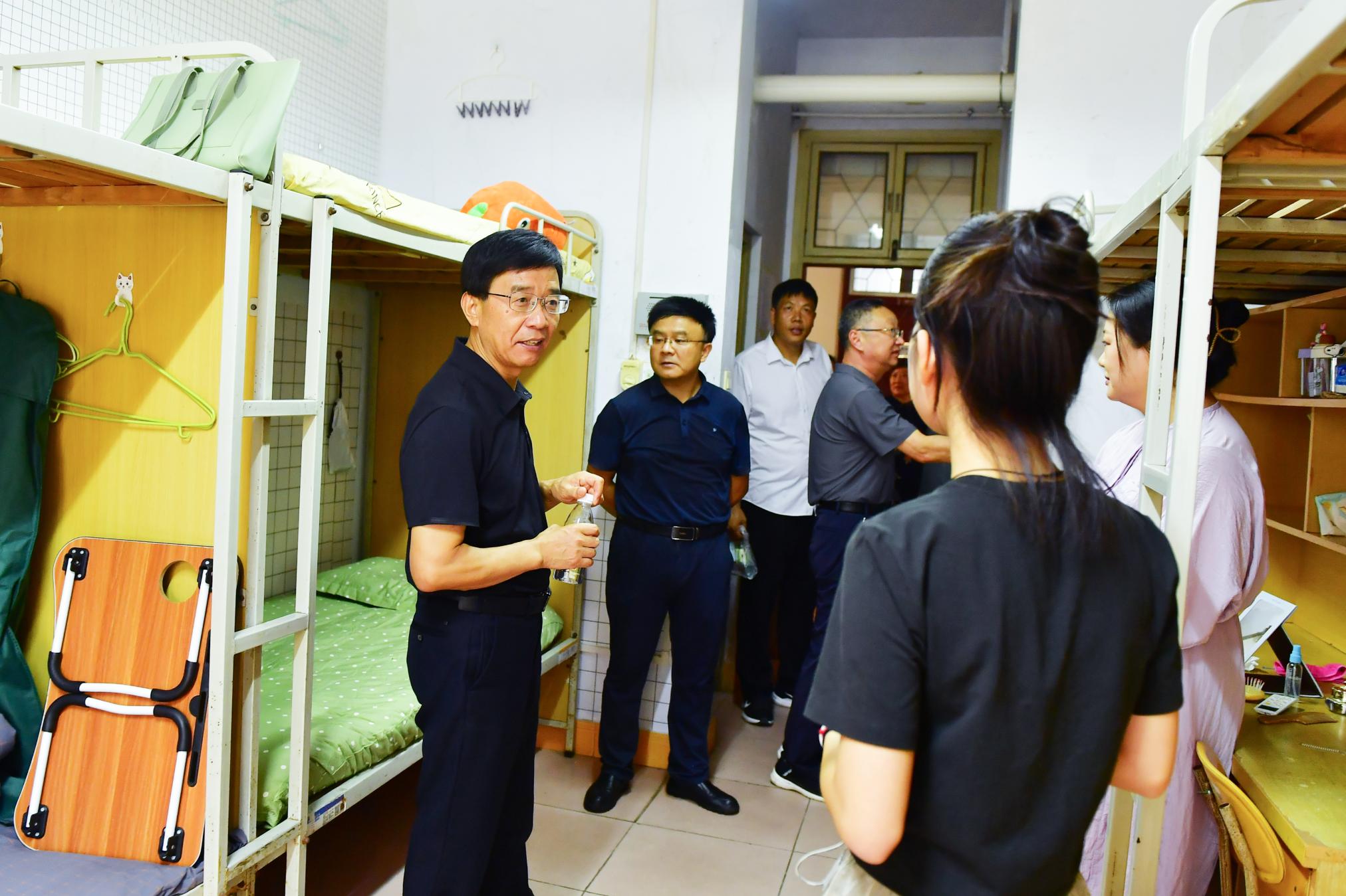 校领导一行走访了各学院迎新点、研究生报到点、教学咨询点、心理健康咨询点、反诈骗宣传点和学生宿舍等,全流程视察指导迎新工作。