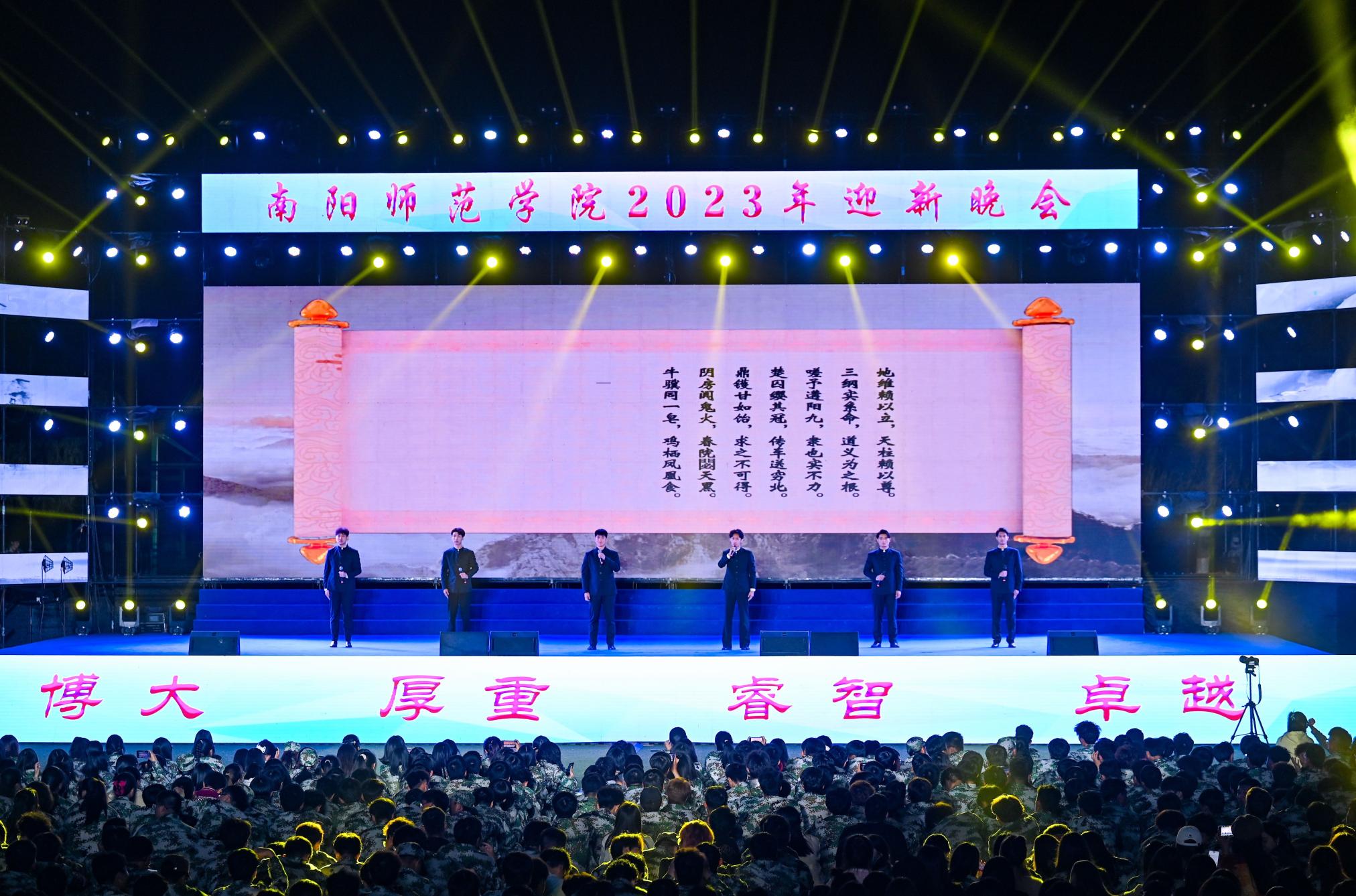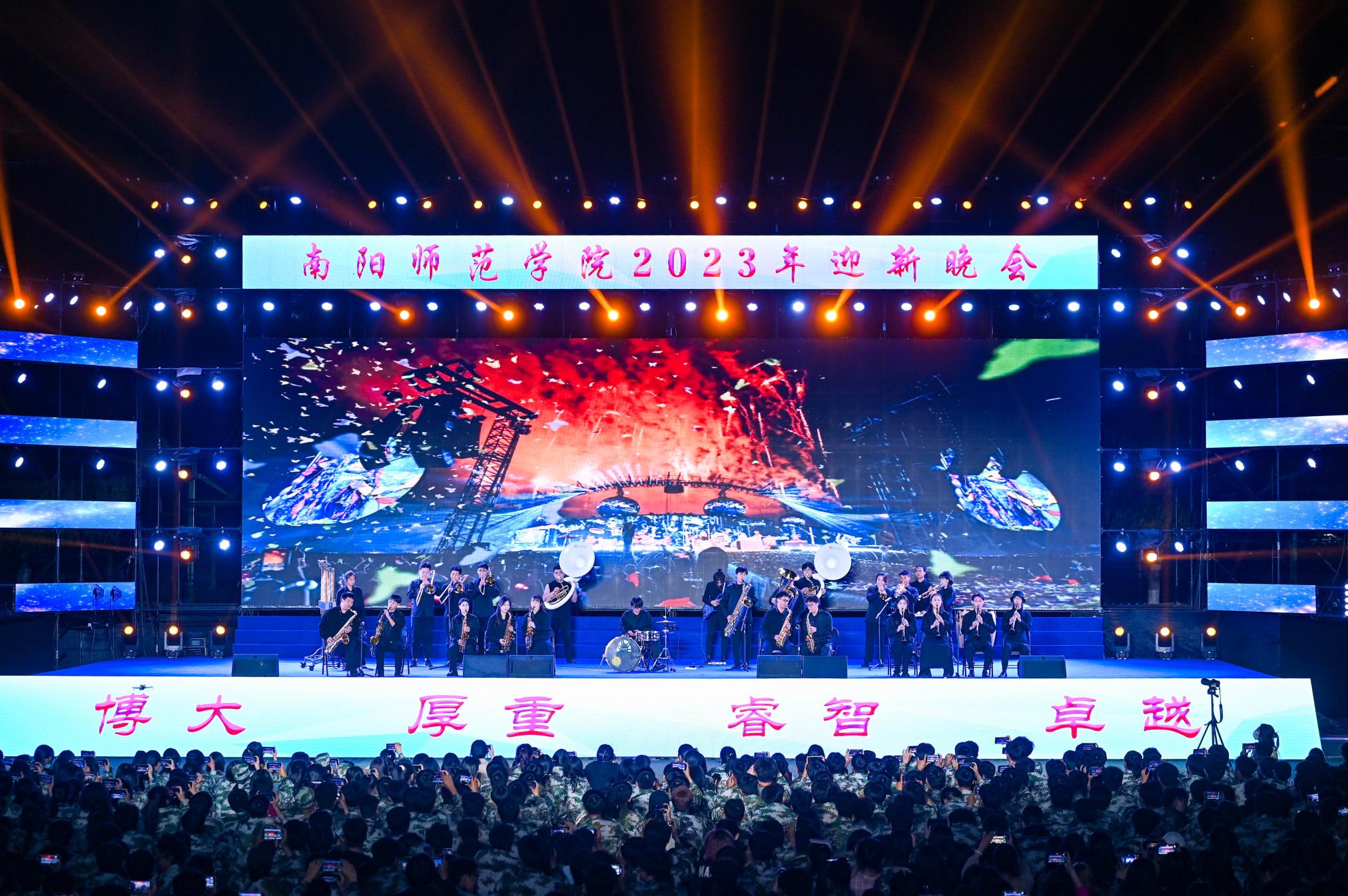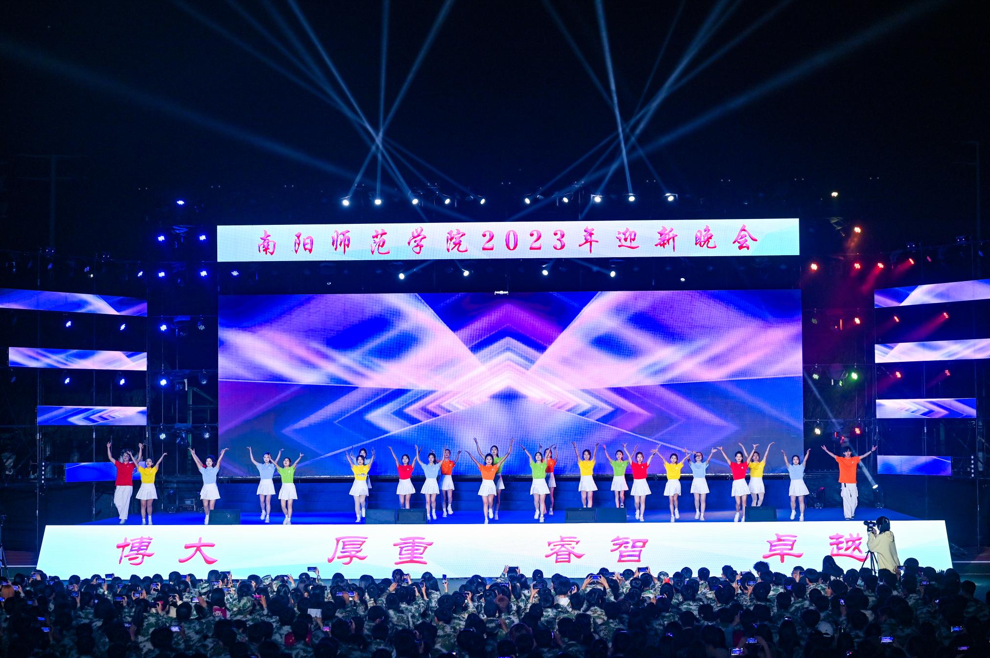 迎新晚会分为青春、逐梦、启航三个篇章。青春篇章中,激情澎湃的鼓武表演《男儿当自强》为晚会拉开序幕;舞蹈《青春日记》嗨翻全场,舞出了青春进行时;诗歌朗诵《正气歌》的朗诵者们声音坚定、浑厚,尽显南师学子的浩然正气;服装走秀《东方印象》的模特们迈着或优雅或潇洒的台步,伴随着强劲有穿透力的音乐,展现东方美学。逐梦篇章中,器乐合奏《生命万岁》用跳动的音符展现了生命的坚韧与伟大;国标舞《热舞派对》的舞者们用迥劲优美的舞步让晚会场面更加热烈,将氛围推至高潮;歌曲《为梦起航》声声入耳,直击心灵,带动全场合唱;维吾尔族舞蹈《赛乃姆》热情奔放,洒脱欢快,现场掌声雷动、欢呼不断。启航篇章中,笛子独奏《扬鞭催马运粮忙》描绘了农民扬鞭催马、快乐运粮的场景,悠扬欢快的笛声回荡现场;街舞表演《南师,得劲儿!》用充满活力动感的舞动展示出南师学子的青春面貌;情景剧《我从丹江来》呈现了淅川人民舍小家为大家的精神以及天游ty8线路1线路2检测中心作为水源地高校的使命担当;歌伴舞《领航》以音乐之声振奋精神,舞蹈之美滋养心灵。整场晚会中,同学们挥舞着闪光灯欢呼喝彩,热情似火的荧光闪烁如璀璨星芒一般将夜空点亮。(编审 张君明)