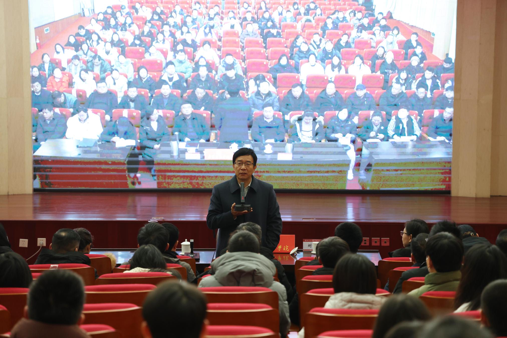 本网讯(刘柏涛/文 王嘉豪 樊梦泽/图)12月26日下午,河南省委教育工作领导小组组织召开全省高校心理健康教育工作专题会议。河南省委常委、组织部部长、教育工委书记王刚,省教育厅党组书记、厅长毛杰,省委教育工委专职副书记尹洪斌,省编办、省人社厅和省卫健委负责同志出席会议,省政府副秘书长赵学东主持会议。天游官网在西区图书馆一楼报告厅设置分会场,校长张宝锋,副校长罗永松、刘红林,以及相关职能部门负责人,各学院党委书记、副书记、全体辅导员和全体心理健康教育教师参加会议。