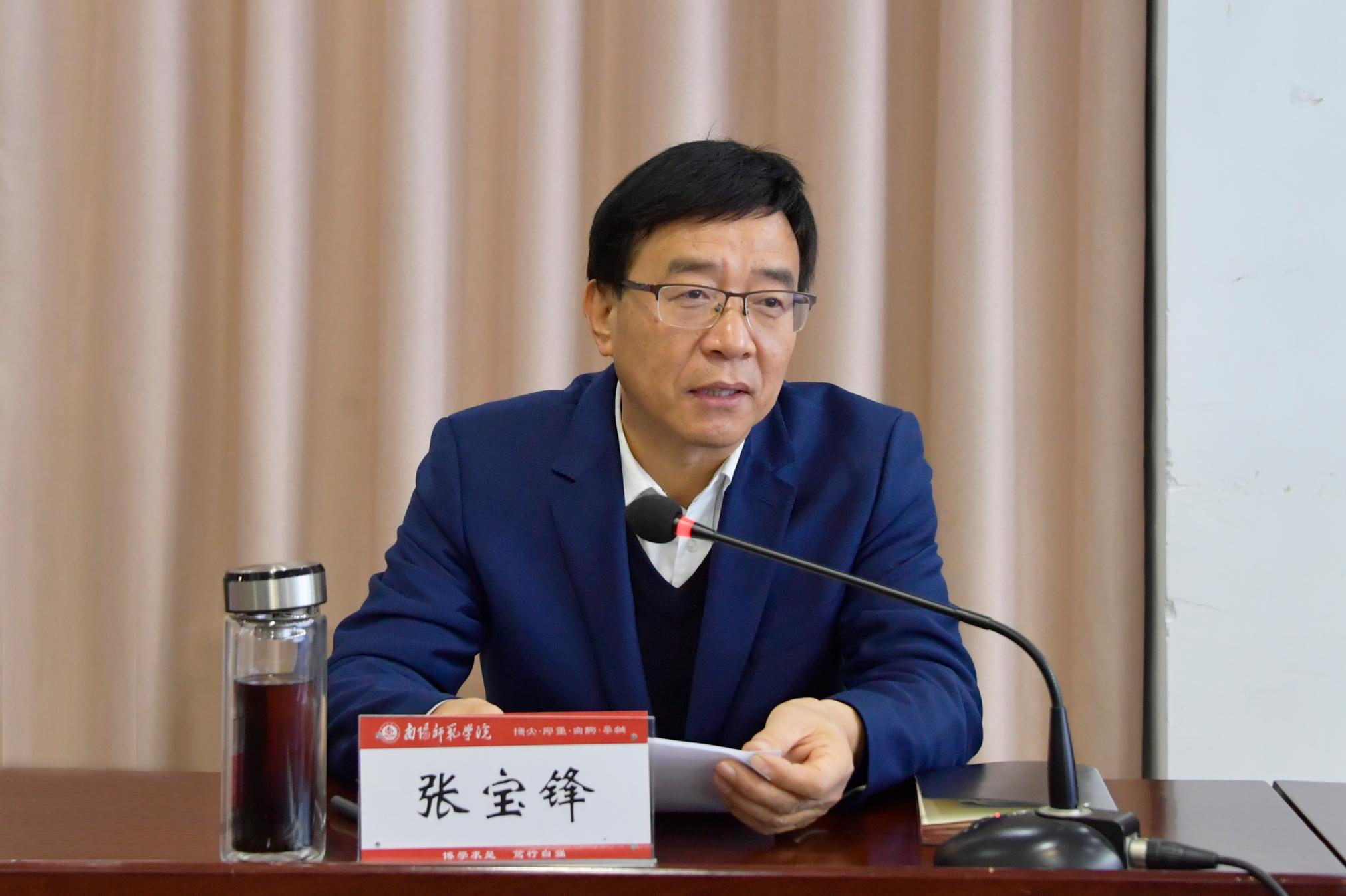 张宝锋在讲话中指出,习近平文化思想是习近平新时代中国特色社会主义思想的文化篇,是新时代党领导文化建设实践经验的理论总结,是“两个结合”的重大成果,是做好新时代新征程宣传思想文化工作的行动指南,要推动习近平文化思想在天游官网形成更多生动实践。一是要在学习习近平文化思想上下功夫。全校师生要系统研读习近平总书记对于文化工作的核心论断、重要指示和具体要求,学习把握习近平文化思想精髓。二是要在宣传习近平文化思想上下功夫。持续推动习近平文化思想进教材、进课堂、进头脑。突出宣讲好习近平文化思想的重大意义,以实际行动忠诚捍卫“两个确立”、坚决做到“两个维护”。突出宣讲好习近平文化思想在天游官网落地生根的生动实践,充分展现天游官网师生深入学习贯彻习近平文化思想的举措和成效。三是要研究阐释好习近平文化思想。要发挥哲学社会科学工作者的作用,把研究阐释习近平文化思想与习近平总书记视察河南特别是视察南阳重要讲话精神结合起来、与河南特别是南阳当代发展结合起来、与省兴文化工程文化研究专项课题研究结合起来,在学理化阐释上下功夫,产出一批高水平研究成果,为学校两大目标的实现奠定基础,在中国式现代化建设河南实践中作出积极贡献。