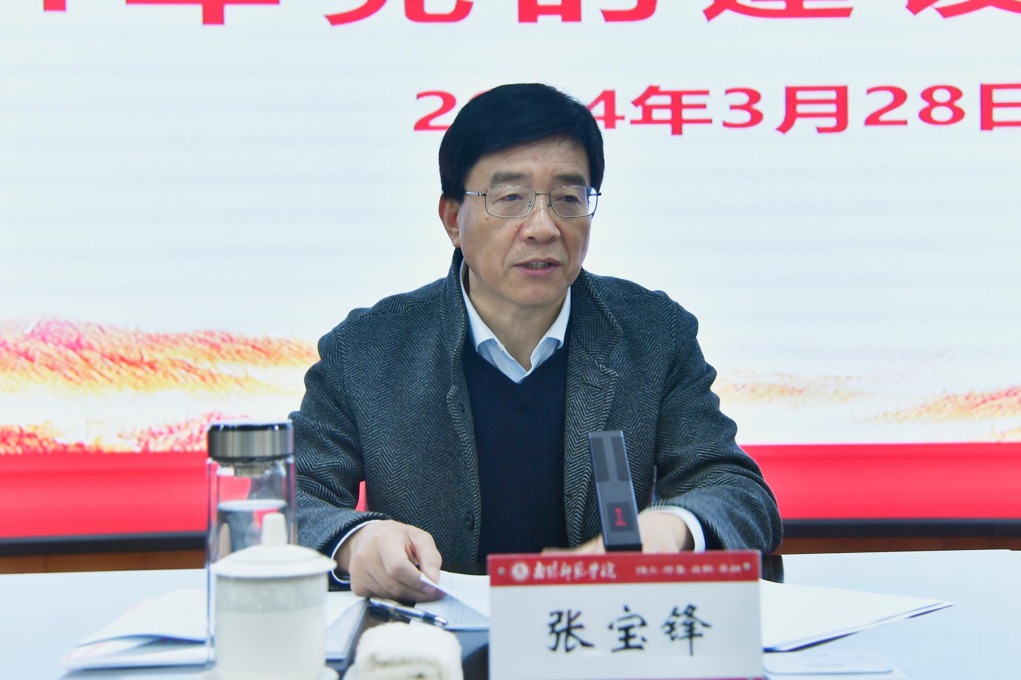 张宝锋在报告中回顾总结了过去一年学校党建工作的主要成绩和工作亮点,分析了当前学校党建工作面临的新形势新任务新要求,安排部署了2024年的党建工作重点任务。一要抓好党的政治建设首要任务,以实际行动忠诚践行“两个维护”。二要落实党的思想建设根本任务,坚持不懈用习近平新时代中国特色社会主义思想凝心铸魂育人。三要全面加强党的基层组织建设,深化基层党建工作特色品牌创建。四要强化领导班子和干部队伍建设,进一步打造高素质专业化干部队伍。五要抓好意识形态、统战、群团、校园安全等工作,为学校事业高质量发展提供政治引领、凝聚发展合力、提供安全保障。
