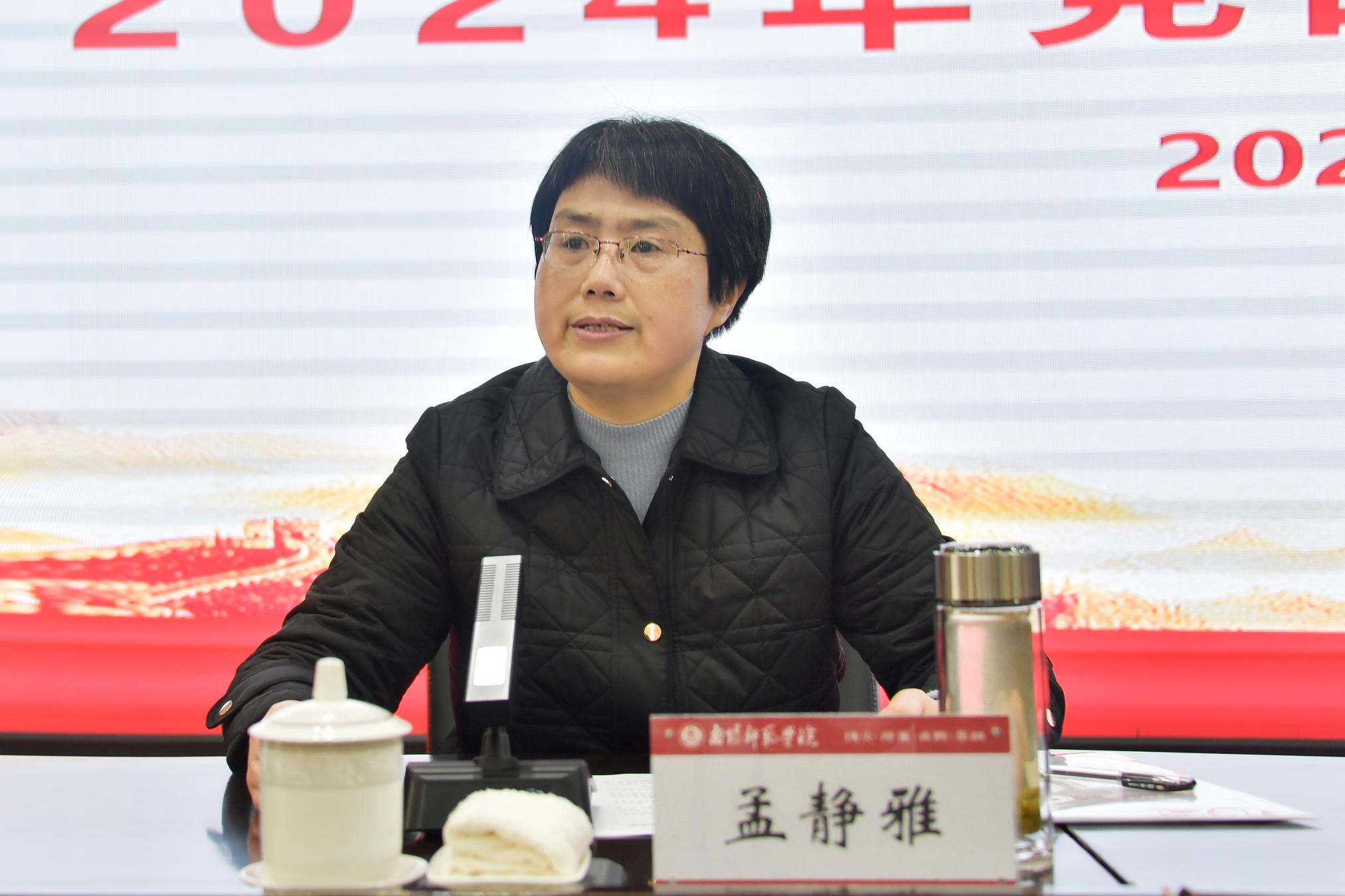 孟静雅就抓好会议精神的贯彻落实提出了三点要求,一要提高站位抓落实,牢牢把握新时代党的建设总要求,认真传达学习会议精神,确保传达到位、宣传到位、落实到位。二要突出工作重点抓落实,着力构建高质量党建工作体系,不断提升党建工作标准化、科学化、规范化水平。着力推动党建和事业发展“一融双高”,充分发挥二级党组织政治核心作用、基层党支部战斗堡垒作用和党员先锋模范作用,向发展聚焦、向目标聚力,持续攻坚克难、守正创新,以党的建设高质量引领学校事业发展高质量。三要强化纪律意识,认真开展党规党纪学习教育,引导全校党员干部学纪、知纪、明纪、守纪,营造更加风清气正的政治生态和发展环境。(编审 席晓丽)