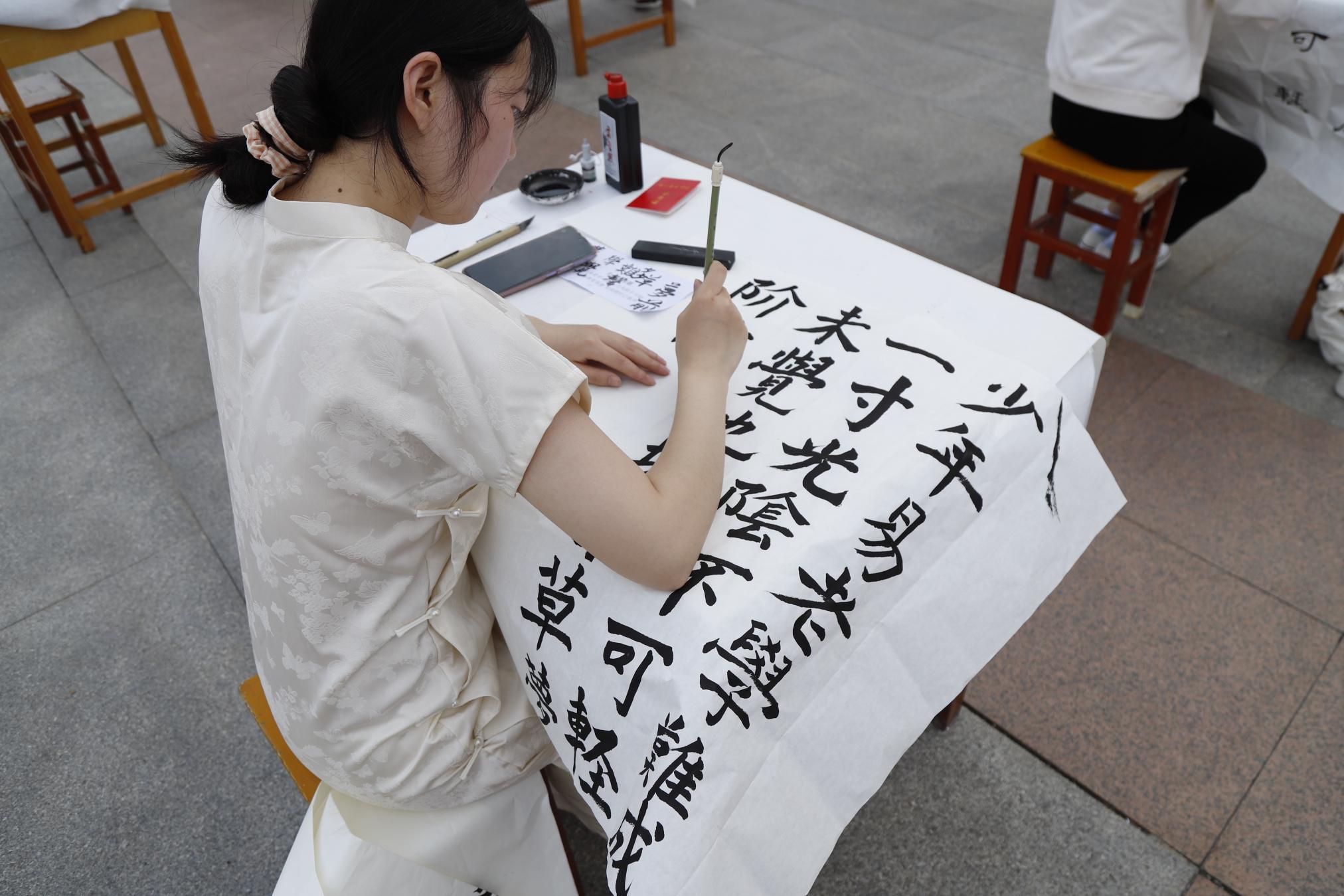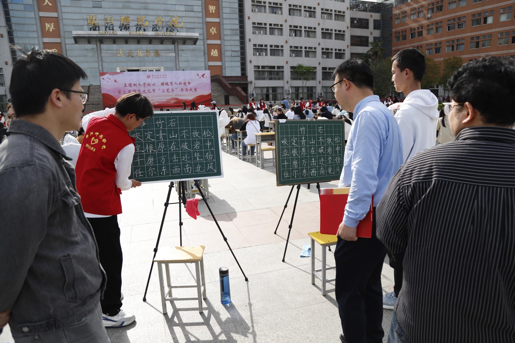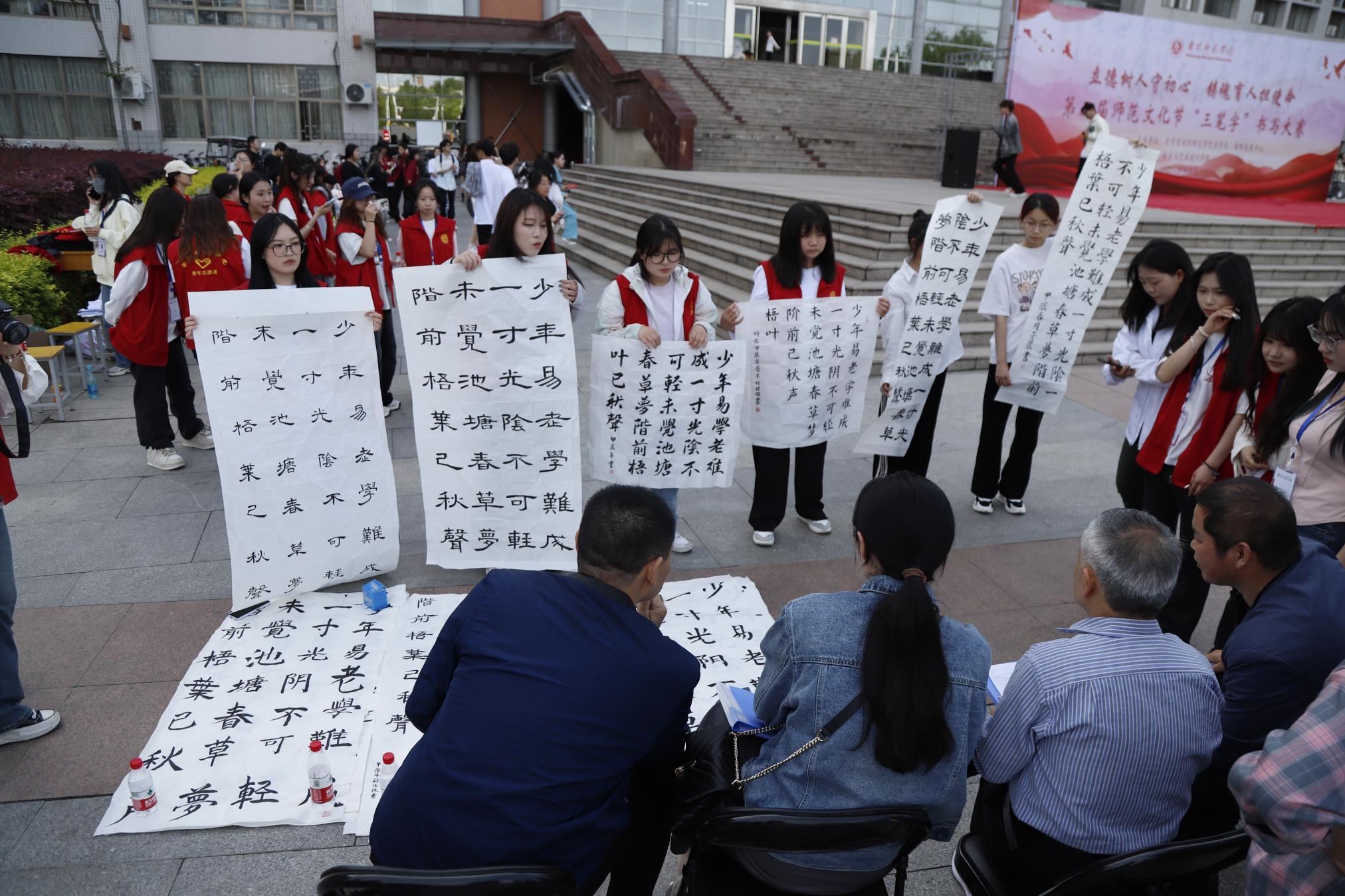 本网讯(杨眉 杨婷/文 王若寒 张涵雅/图)为加强师范教育,擦亮师范特色,提升天游官网学子的汉字书写水平,4月17日下午,由校团委、教师发展中心主办,美术与艺术设计学院承办的第三届师范文化节“三笔字”大赛决赛在逸夫楼东广场举行。副校长刘红林出席,校团委、教师发展中心、国际交流合作处、美术与艺术设计学院负责同志参加。