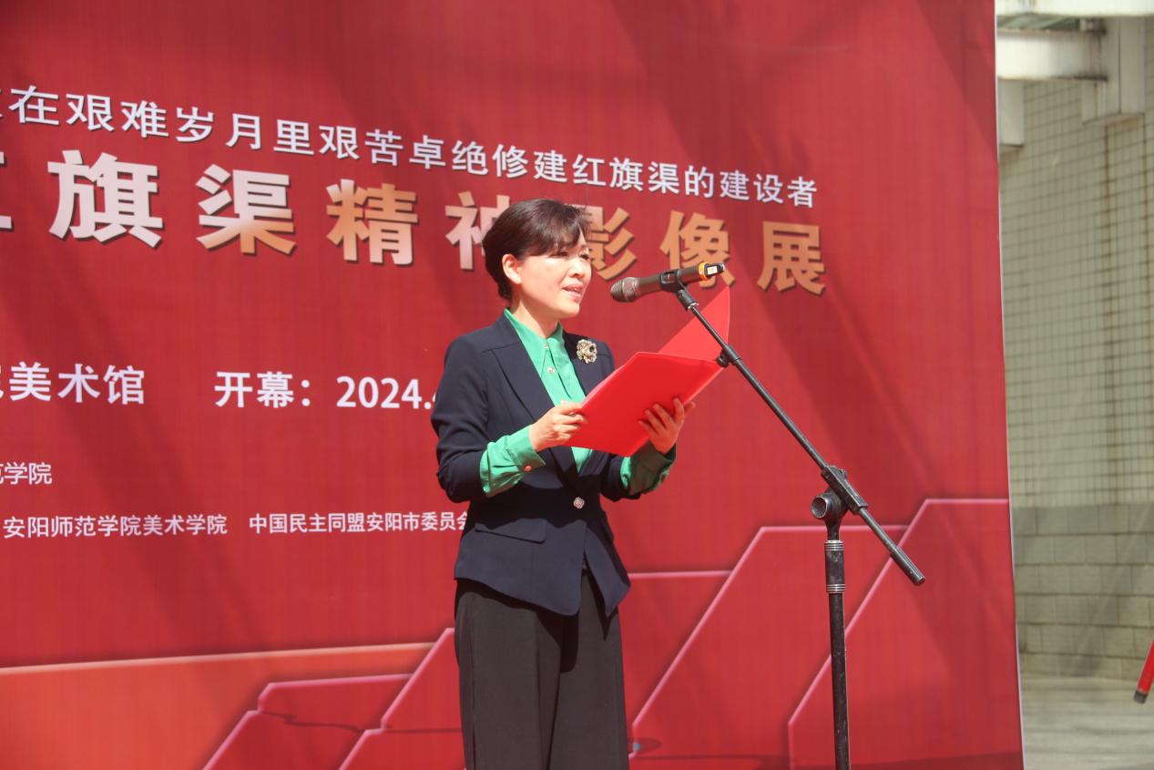 王岩致辞。她希望广大师生以这次巡展为契机,品读红旗渠、体悟红旗渠、弘扬红旗渠精神,传承红色文化基因,赓续共产党人精神血脉,坚定文化自信,坚持以习近平文化思想为引领,聚焦“在新的历史起点上继续推动文化繁荣、建设文化强国、建设中华民族现代文明”这一新的文化使命,做出自己的贡献。