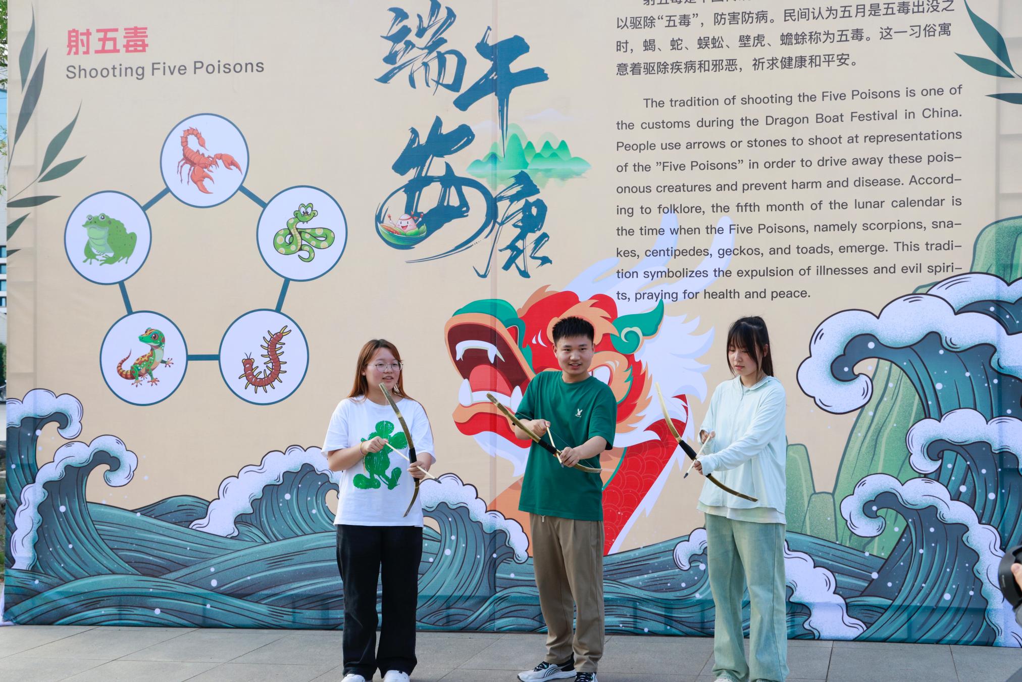 活动现场,除了精彩的端午文化节目表演,还设置了互动体验区,包粽子、编手绳、射五毒、做香囊……各个体验区各展所长,吸引来往师生参与其中,让大家在潜移默化中感受中华优秀传统文化,厚植爱党爱国情怀。(编审 张君明)