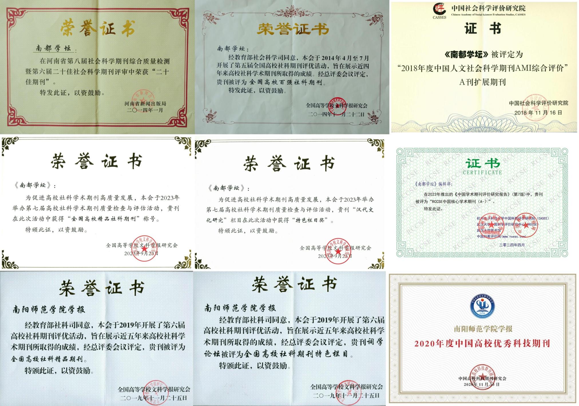 学校主办两种学术刊物《南都学坛》《天游ty8线路1线路2检测中心学报》,始终坚持正确的政治方向,遵守国家出版法律法规,坚持守正创新,学术至上,办刊质量不断得到提升。两刊均为全国精品社科期刊、全国百强社科期刊、河南省一级期刊。其中,《南都学坛》为河南省二十佳社科期刊、河南省十佳优秀社科期刊、RCCSE中国核心学术期刊;《天游ty8线路1线路2检测中心学报》自科版为中国高校特色科技期刊、中国高校优秀科技期刊;“汉代文化研究”和“词学论坛”栏目获“特色栏目奖”,为扩大学校影响和繁荣校内外学术交流做出了积极贡献。