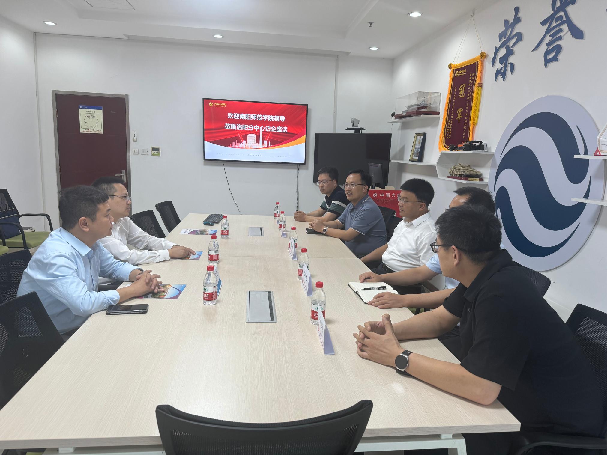 在中国大地保险有限公司新零售事业部洛阳分中心,刘红林一行参观了员工的工作环境,并与中国大地财产保险股份有限公司洛阳分中心综合支持处处长张永春等就本月开展专场招聘会、学生实习、毕业生薪资待遇等问题进行了交流。