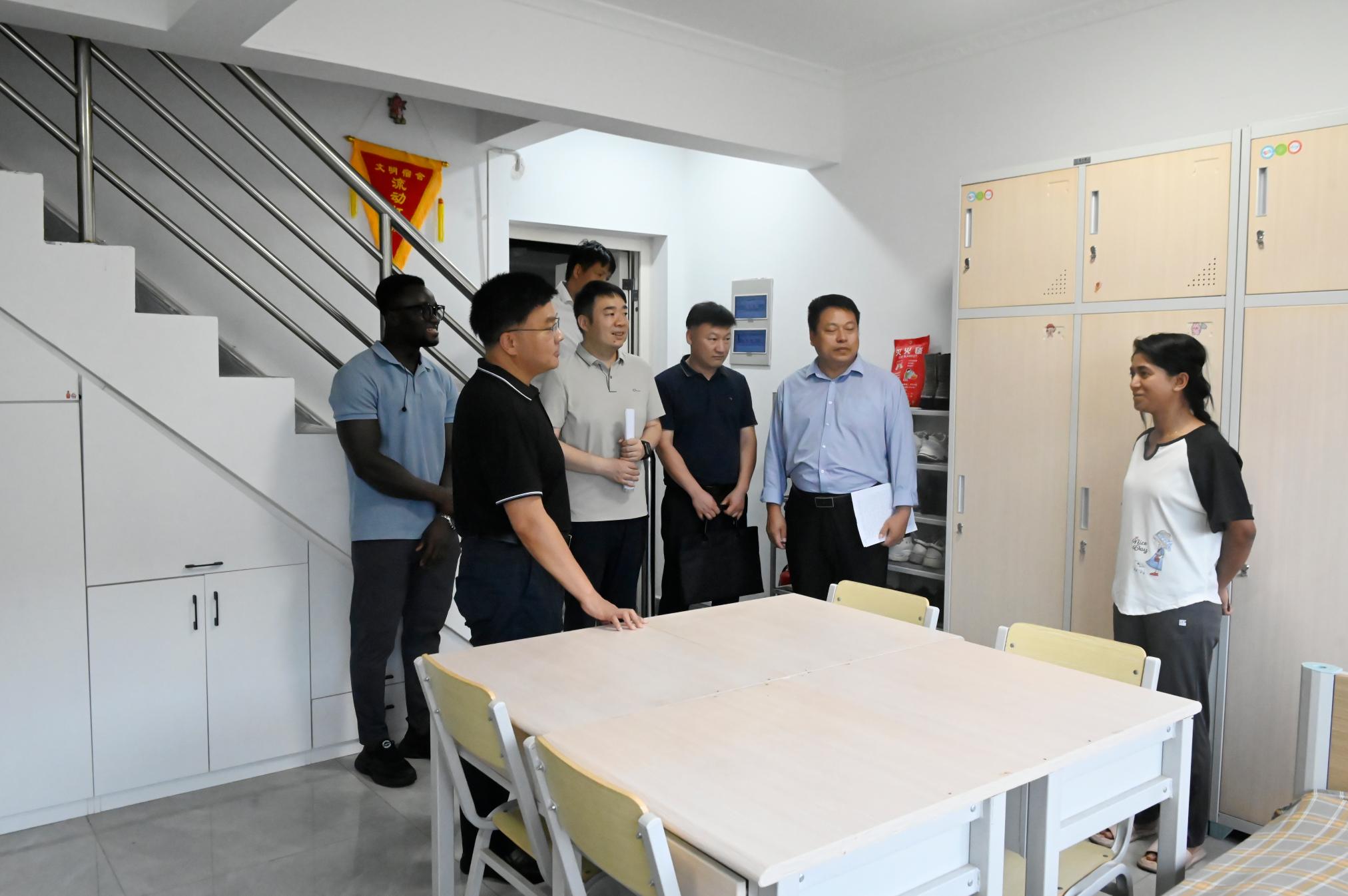 刘红林一行先后走访了学生公寓、西区澡堂、中区及西区餐厅等地,并与留校学生、国际留学生、社区辅导员等亲切交谈,详细询问了暑期留校学生的学习生活等情况,检查指导留校学生安全稳定工作,并向大家致以假期问候。刘红林对同学们在酷暑下克服困难、磨砺意志,始终保持砥砺奋进的姿态高度赞赏,并叮嘱大家在工作、学习之余注重劳逸结合和人身安全。