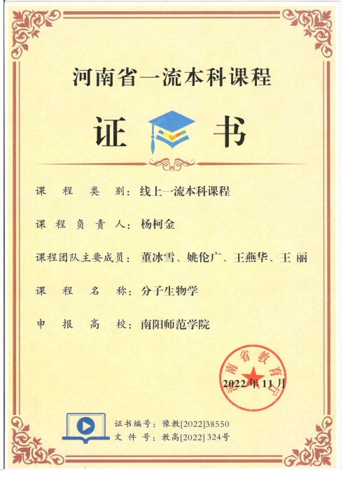 学科群围绕南水北调和南阳特色产业,整合骨干专业资源,积极建设核心课程群,重塑课程体系,开设《环境学概论》《生态学》《大国水脉》《大国工匠》等通识课程,面向全校学生开放选修。重点支持《分析化学》《水环境修复工程》《环境资源法学》等专业课程,构建“打基础—塑专业—提能力—练应用”四级课程体系,打造国家级、省级“金课”。推动南水北调科研成果进教案、进课堂、进教材,使课堂成为教学成果落地的第一站,实现专业知识实时更新升级。近三年,生物科学教师团队获批“河南省高校黄大年式教学团队”,学科群相关专业获得省级教学成果奖18项,建设33门省级一流本科课程,出版教材5部。