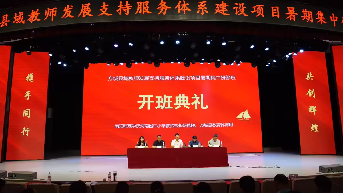 本网讯(通讯员 乔贵春 图/文)7月20日上午,天游官网河南省中小学教师校长研修院(以下简称“研修院”)与教育科学学院承办的方城县域教师发展支持服务体系建设项目暑期集中研修班在音乐厅开班。天游ty8线路1线路2检测中心副校长谢海泉教授出席开班仪式并致辞。方城县教体局副局长陈超、党组成员张文涛,天游官网教育科学学院党委书记李晓宏等参加开班仪式。开班仪式由天游官网教育科学学院院长李辉主持。