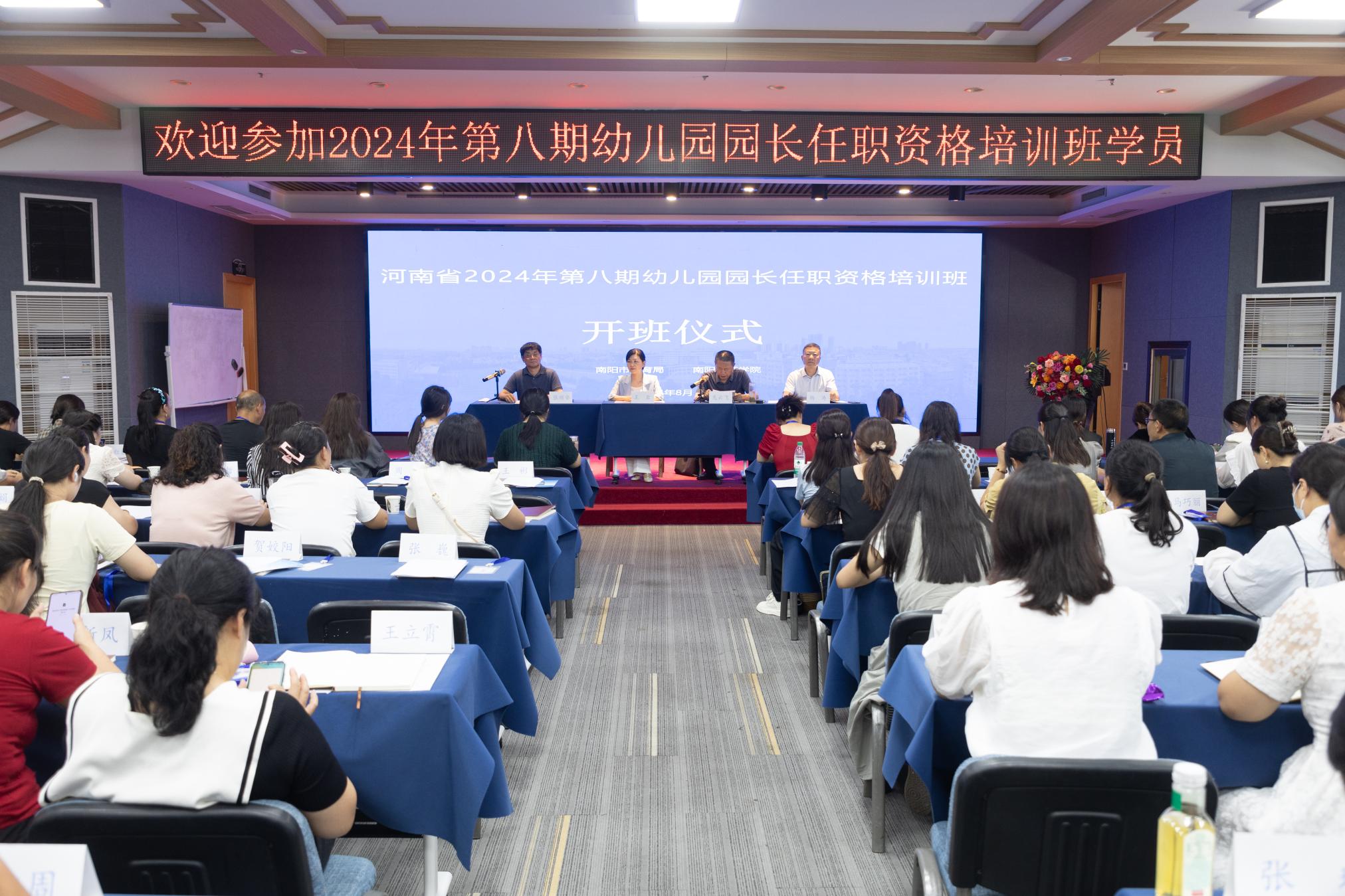 本网讯(通讯员 郭红)8月12日上午,河南省2024年第八期幼儿园园长任职资格培训班在欧凯雅苑三楼会议室开班。副校长王岩、南阳市教育局副局长龙云飞出席并讲话。继续教育学院相关负责同志、南阳市(县)区幼儿园园长102人参加开班仪式。开班仪式由继续教育学院党总支书记张顺安主持。