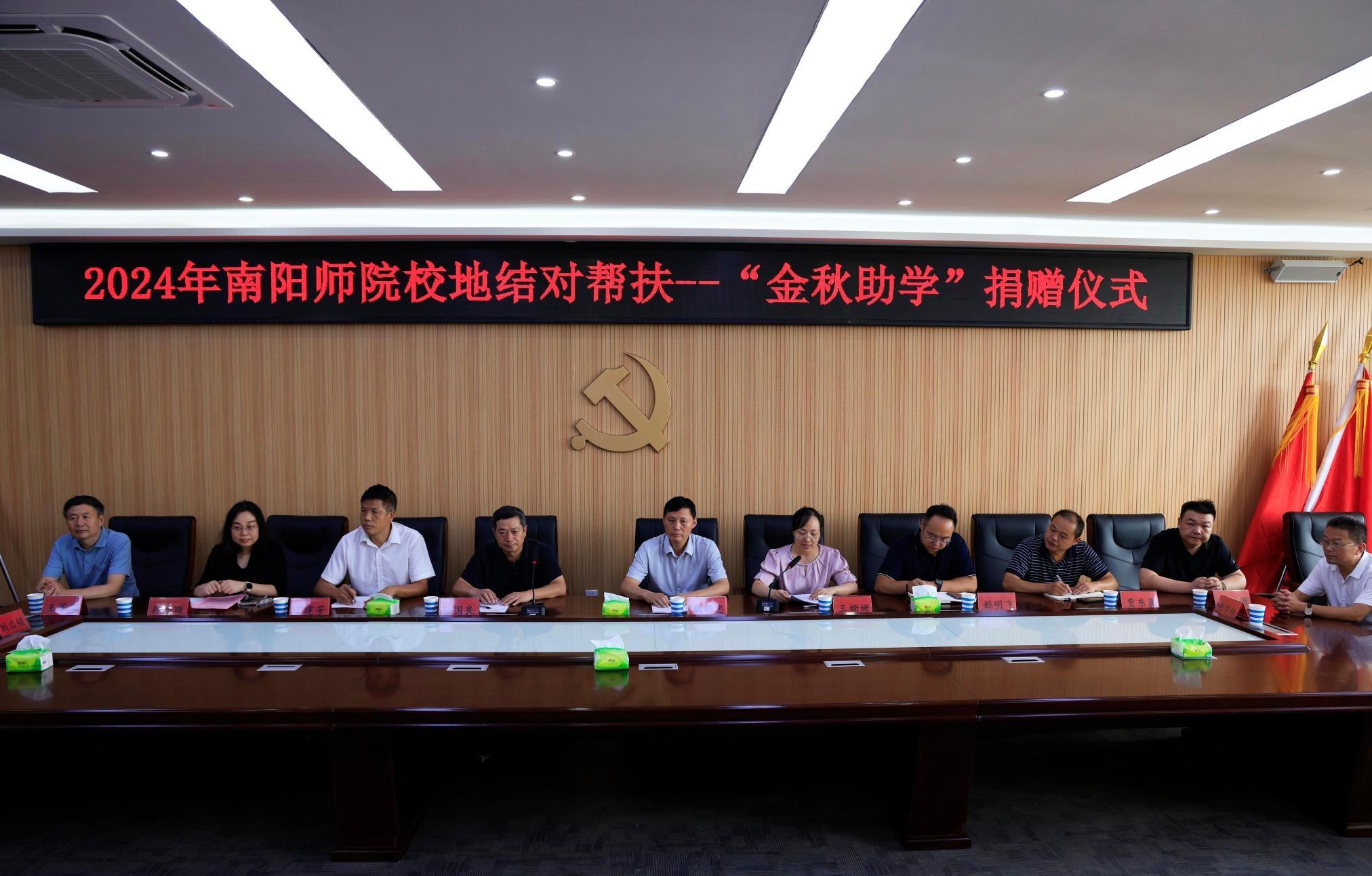 本网讯(孙渔珽/文 胡新悦/图)8月30日上午,副校长熊新忠带领院长办公室、校团委、工会、后勤管理与服务中心相关负责同志赴社旗县开展“校地结对帮扶社旗县金秋助学”捐赠活动。社旗县关工委、政府办、团委、农业农村局相关负责同志参加此次活动。