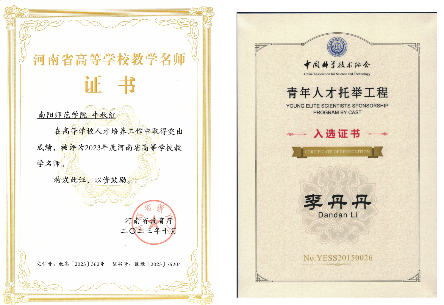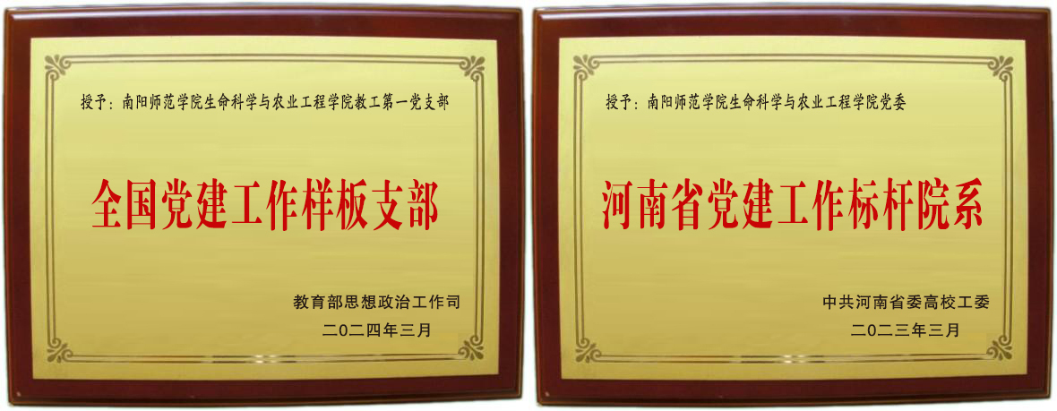 学院党委荣获了省高等学校先进基层党组织和“全省党建工作标杆院系”培育创建单位。教工第一党支部获评省高等学校“两优一先”先进基层党组织和全国样板党支部称号。牛秋红教授被评为省高等学校教学名师、省优秀教师和省教科文卫体系统优秀教师,姚伦广教授被评为省优秀共产党员和省高等学校优秀共产党员,并作为高校党员代表光荣参加河南省第十一次党代会。