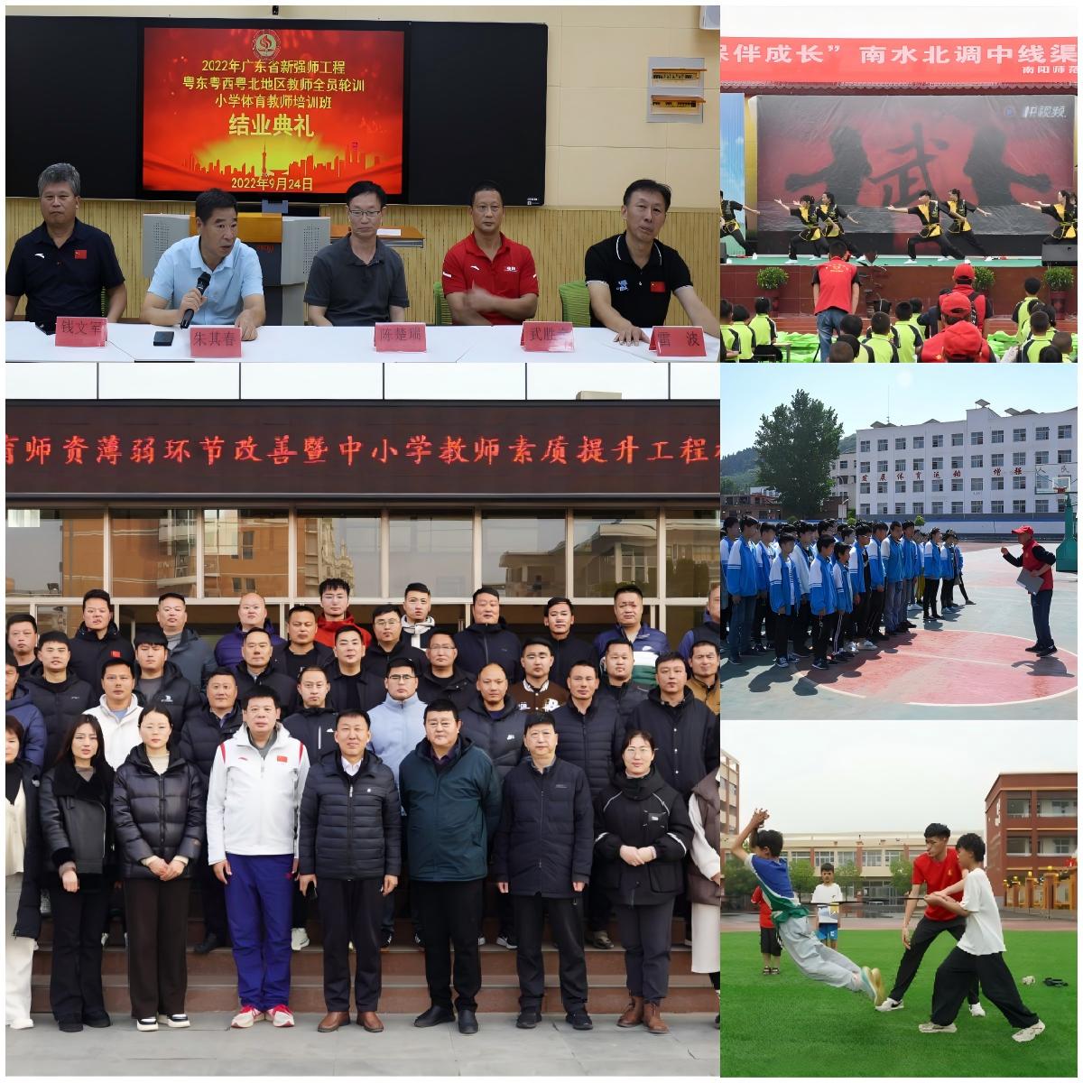体育承载着国家强盛、民族振兴的重任。体育学院党委勇于担当、自觉服务于“体育强国”“健康中国”“教育强国”建设等国家重大战略;服务于“健康中原”“体育强省”建设等河南省战略;服务于“南阳副中心城市教育创新发展”“南水北调中线渠首乡村教育、体育振兴”等南阳市战略,逐渐形成特色鲜明的体育服务品牌。一是承办各级各类体育赛事,如第7届全国农运会乒乓球比赛、河南省大学生华光杯第21届篮球赛等;二是助力基础教育教学体育师资能力提升,如本省的培训——2020年中西部项目乡村中小学教师专业能力建设培训,以及辐射到外省的培训——2022年广东省新强师工程中小学幼儿园教师、校(园)长省外研修培训项目等。三是开展常态化体育志愿活动,如中小学跳绳培训、中考体育加试指导、南水北调核心水源区体育健康与文化等服务;四是积极服务地方优秀传统体育文化的传承弘扬工作,如普查整理体育非遗项目,保护中华优秀传统文化,取得了较大的社会影响和实际效果。