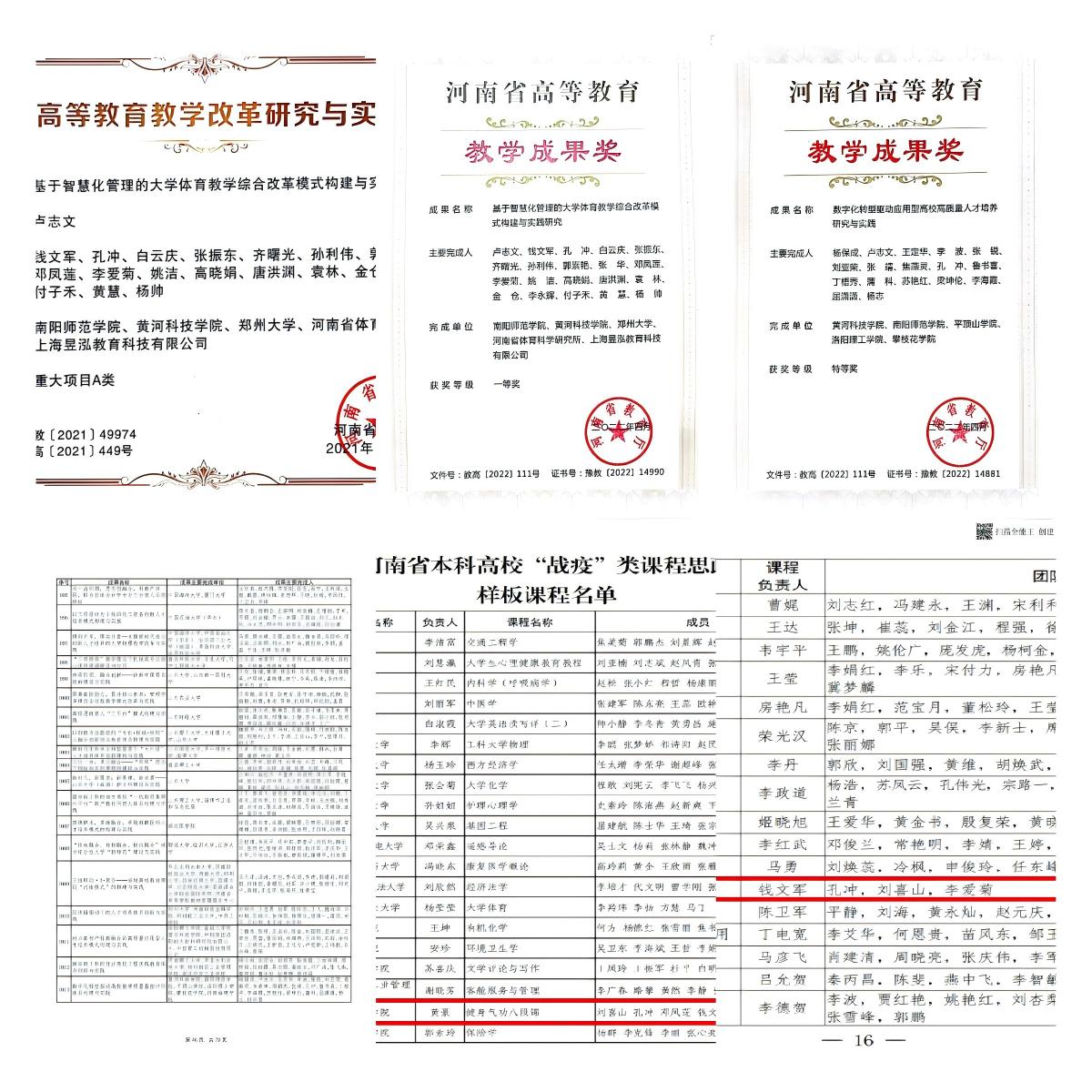 体育学院党委以立德树人为导向,以建党精神、党史学习教育、能力作风建设、课程思政建设、各级体育竞赛、学风教风建设为抓手,不断探索创新,构建了体育学院“六个育人”模式——思想育人、以史育人、服务育人、课程育人、竞赛育人、环境育人。特别是竞赛育人中,打造“高层次体育竞赛争冠”和“高水平学科竞赛创优”,实现了体育竞赛省赛创第一、国赛拿金牌(20多项全国冠军)、国际比赛获资格(受国家体育总局和教育部委派,获得两次代表国家出国参赛资格,开创了河南高校单一组队参加国际比赛的先河)、学科竞赛省级创优的特色育人成效。《河南日报》专题报道“夺冠密码”,教育部、中国大学生体育协会贺信表扬,人才培养质量得到社会认可。