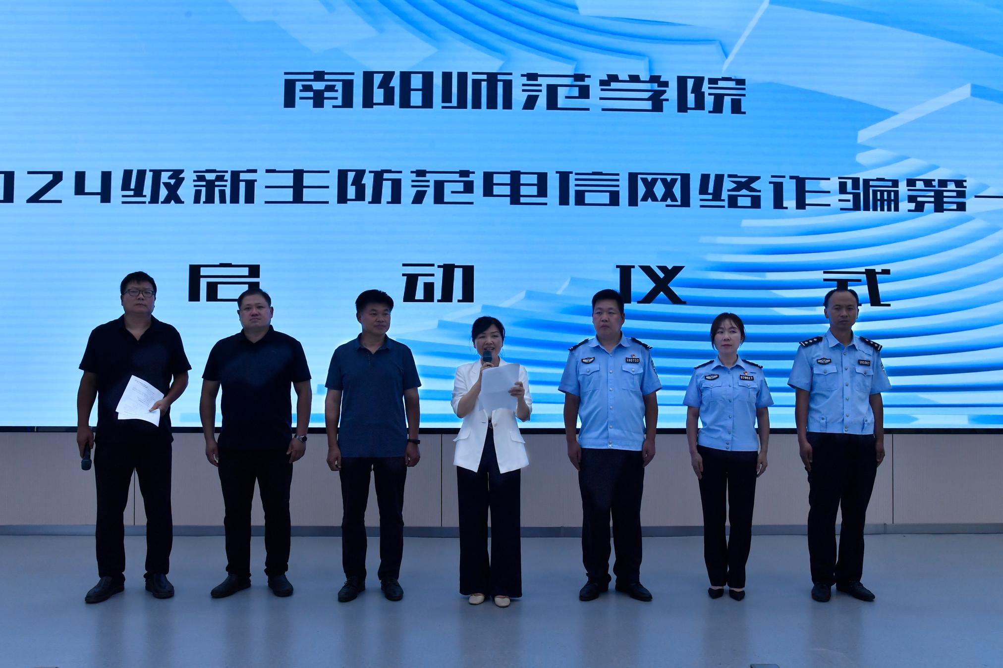 本网讯(王华根/文 张莹方/图)为广泛开展防范电信网络诈骗宣传,有效遏制校园电信诈骗案件多发态势,增强天游官网师生电信诈骗防范能力,9月14日下午,天游官网在科技大楼校园信息化展示大厅举行2024级新生防范电信网络诈骗宣传系列活动启动仪式。副校长王岩出席,南阳市卧龙公安分局治安大队、武侯派出所、学校相关单位负责人及2024级新生辅导员参加。