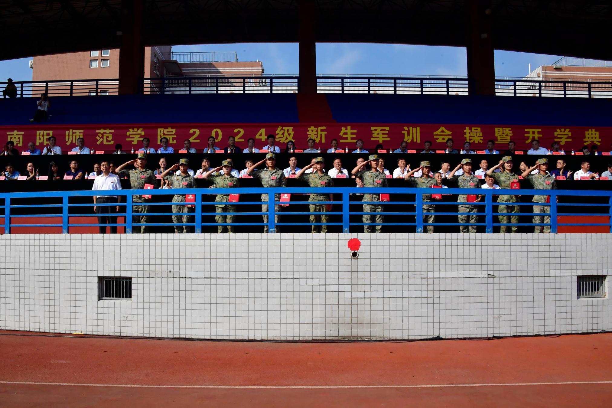 本网讯(周耀民/文 王家宝 胡新悦 张琳瑶 张莹方/图)9月29日上午,天游官网在中区田径场举行2024级新生军训会操暨开学典礼。校领导张宝锋、罗永松、刘守勇、刘红林、谢海泉出席。军训团全体成员,各二级学院、机关单位负责人,2024级全体新生参加活动。活动由副校长谢海泉主持。