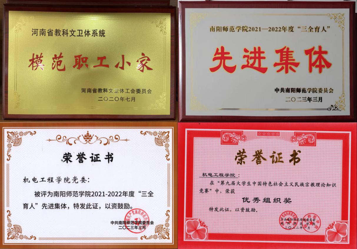 学院党委始终充分发挥榜样引领力量,抓班子谋大局、抓管理建机制、抓教育强队伍、抓思想聚人心、抓稳定促和谐、抓品牌创业绩,以高质量党建推动学院高质量发展。学院党委先后被授予天游ty8线路1线路2检测中心先进基层党组织、河南省高校先进基层党组织、河南省教科文卫系统“五好教工小家”、河南省“巾帼建功”先进集体、河南省高校基层党组织统战工作示范单位、天游ty8线路1线路2检测中心“三全育人”先进集体等。学院党委多次组织红色教育主题党日活动,教工支部积极参与党员志愿服务活动,教工第一党支部荣获天游ty8线路1线路2检测中心先进党支部,被授予河南省高校样板党支部,入选河南省高校“双带头人”教师党支部书记工作室建设单位。