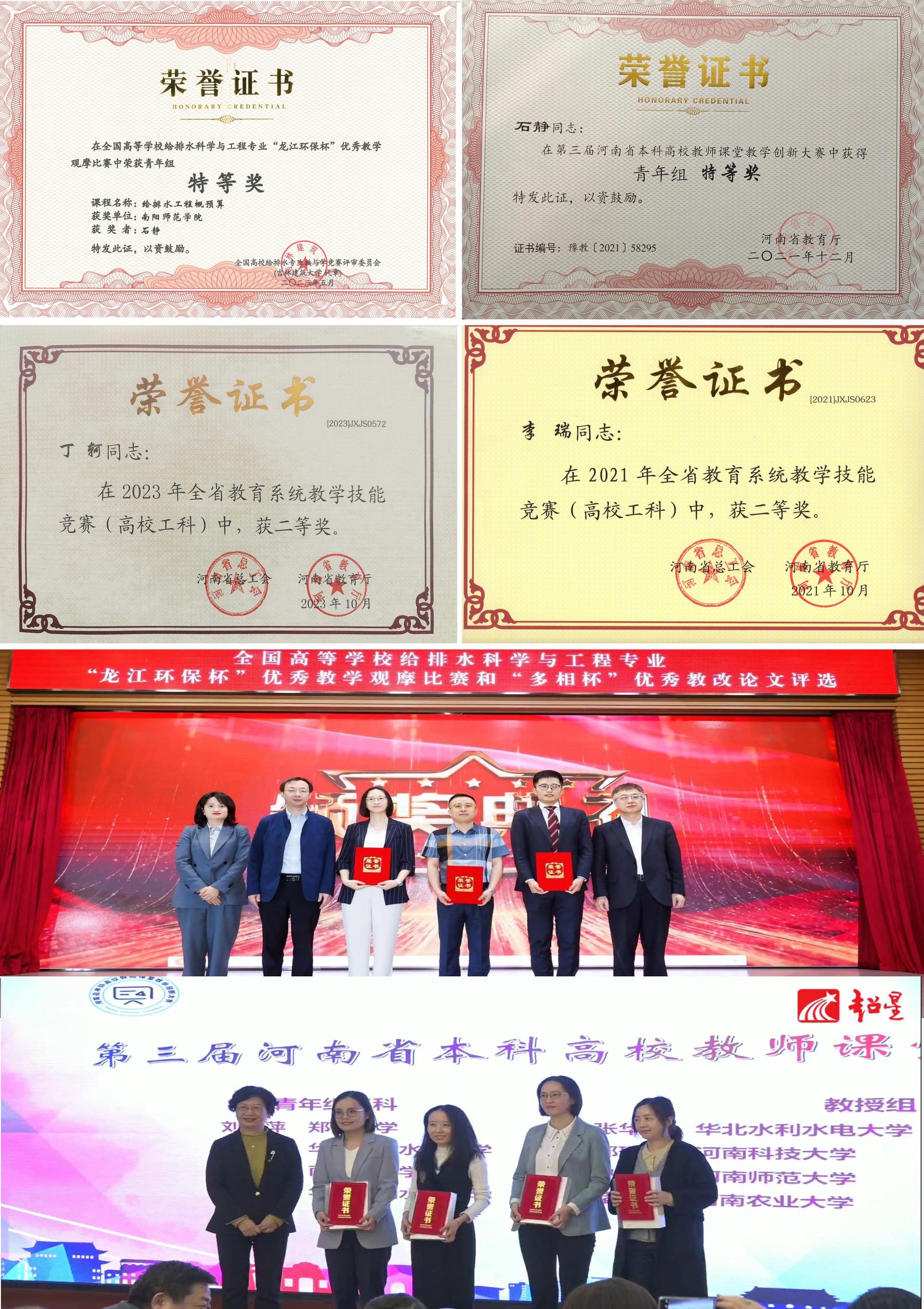 学院根据专业建设需要,采用“外部引进和内部培养”的方式提高教师队伍整体水平,近8年先后引进博士17人,硕士22人。学院坚持“以本为本”的理念,强化教学中心地位,教师中先后有25人次在各类教学技能竞赛中获得优异成绩,其中石静老师荣获全国高等学校给排水科学与工程专业“龙江环保杯”优秀教学观摩比赛青年组特等奖、河南省教育系统教学技能竞赛一等奖、河南省本科高校教师课堂教学创新大赛特等奖、河南省科教文卫体系统“优秀教师”荣誉称号和河南省教学标兵。学院一贯重视"双师型"教师队伍的培养,现有国家注册岩土工程师、注册造价工程师、注册监理工程师等执业资格“双师型”教师23人次。