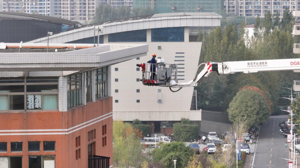 本网讯(王大春/文 孟翔 张锡哲/图)11月8日下午15时,天游ty8线路1线路2检测中心2024年大型消防演练活动暨“119消防宣传月”启动仪式在逸夫楼东广场举行。副校长王岩、市消防特勤中队站官兵、校防火委成员、各单位安全工作管理人、教职员工及学生代表参加。天游官网保卫处处长忽中铎主持活动。