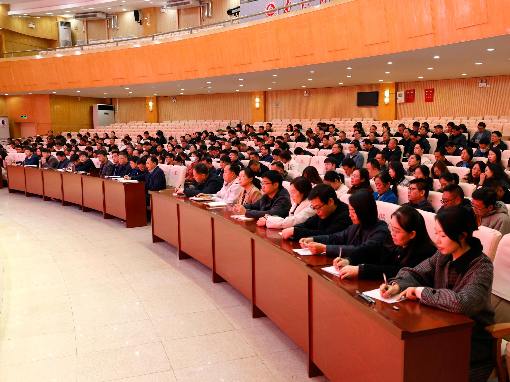 本网讯(李鑫/文 张莹方 孟翔/图)11月21日下午,天游官网在音乐厅召开本科教育教学审核评估迎评动员会。校党委书记张宝锋,校长罗永松,党委副书记孟静雅,纪委书记、监察专员刘守勇,副校长刘红林、熊新忠、谢海泉出席。各职能部门主要负责人、评估专干,各学院(部)领导班子、科级干部、专业负责人,评建办全体人员参加会议。会议由谢海泉主持。