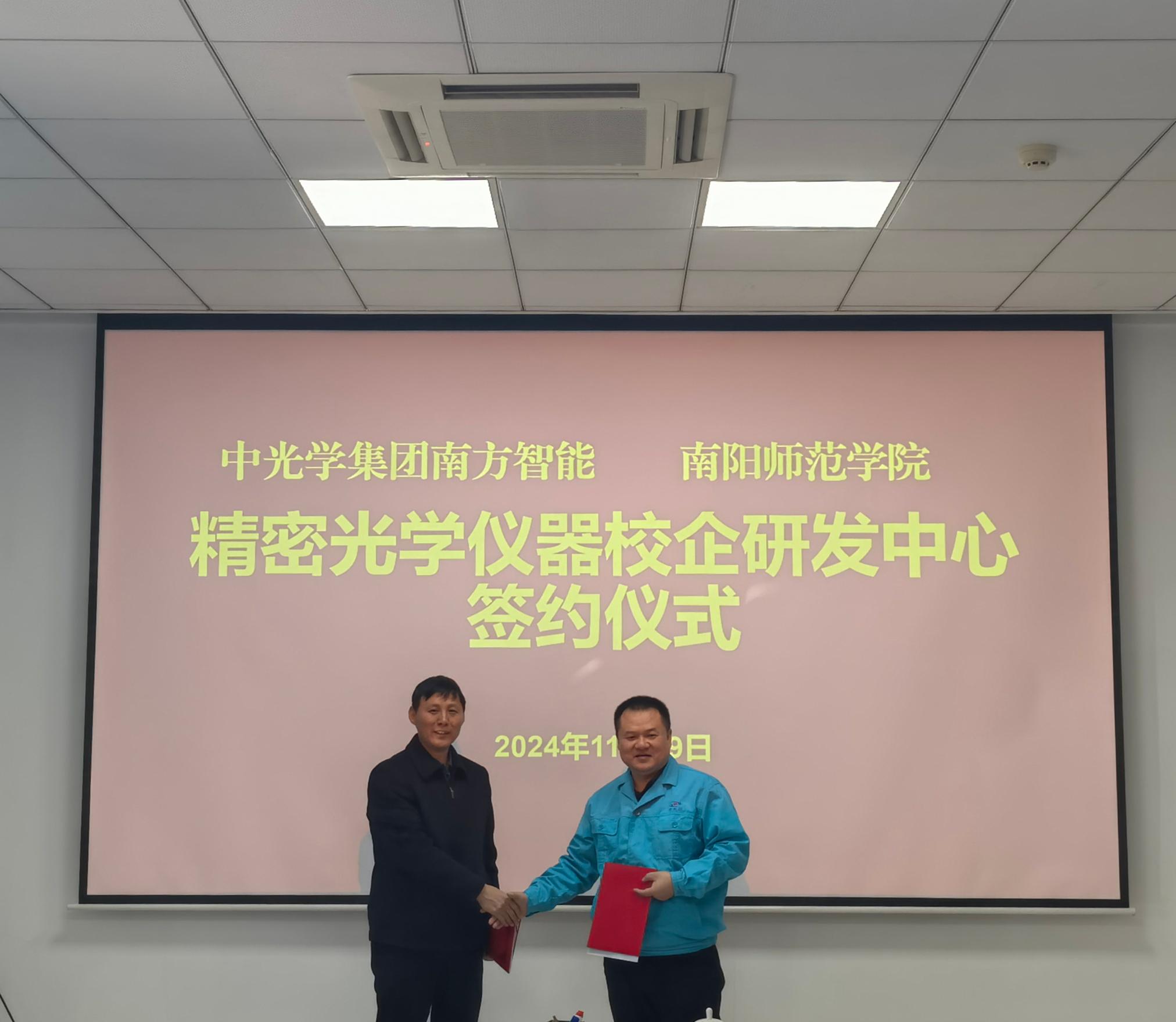 本网讯(通讯员 王典 文/图)为深入推进校企合作、产教融合,11月29日上午,副校长熊新忠携国内合作处、化学与制药工程学院、智能制造与电气工程学院、物理与电子工程学院等单位负责同志赴中光学集团举行“精密光学仪器校企研发中心”揭牌仪式。中光学集团总会计师杨凯陪同参加,活动由南方智能光电有限公司董事长王大治主持。