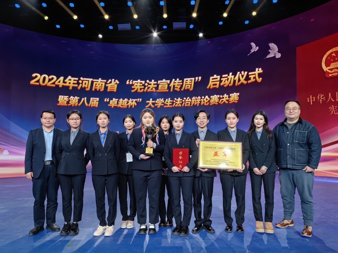 本网讯(通讯员 刘东岳 图/文)12月2日,在第十一个国家宪法日到来之际,由中共河南省委全面依法治省委员会办公室、河南省司法厅、河南省教育厅、河南省法学会主办,信阳师范大学和河南广播电视台承办的2024年省“宪法宣传周”启动仪式暨第八届“卓越杯”法治辩论赛决赛在郑州举行,天游官网代表队喜获亚军。副校长刘红林出席启动仪式。