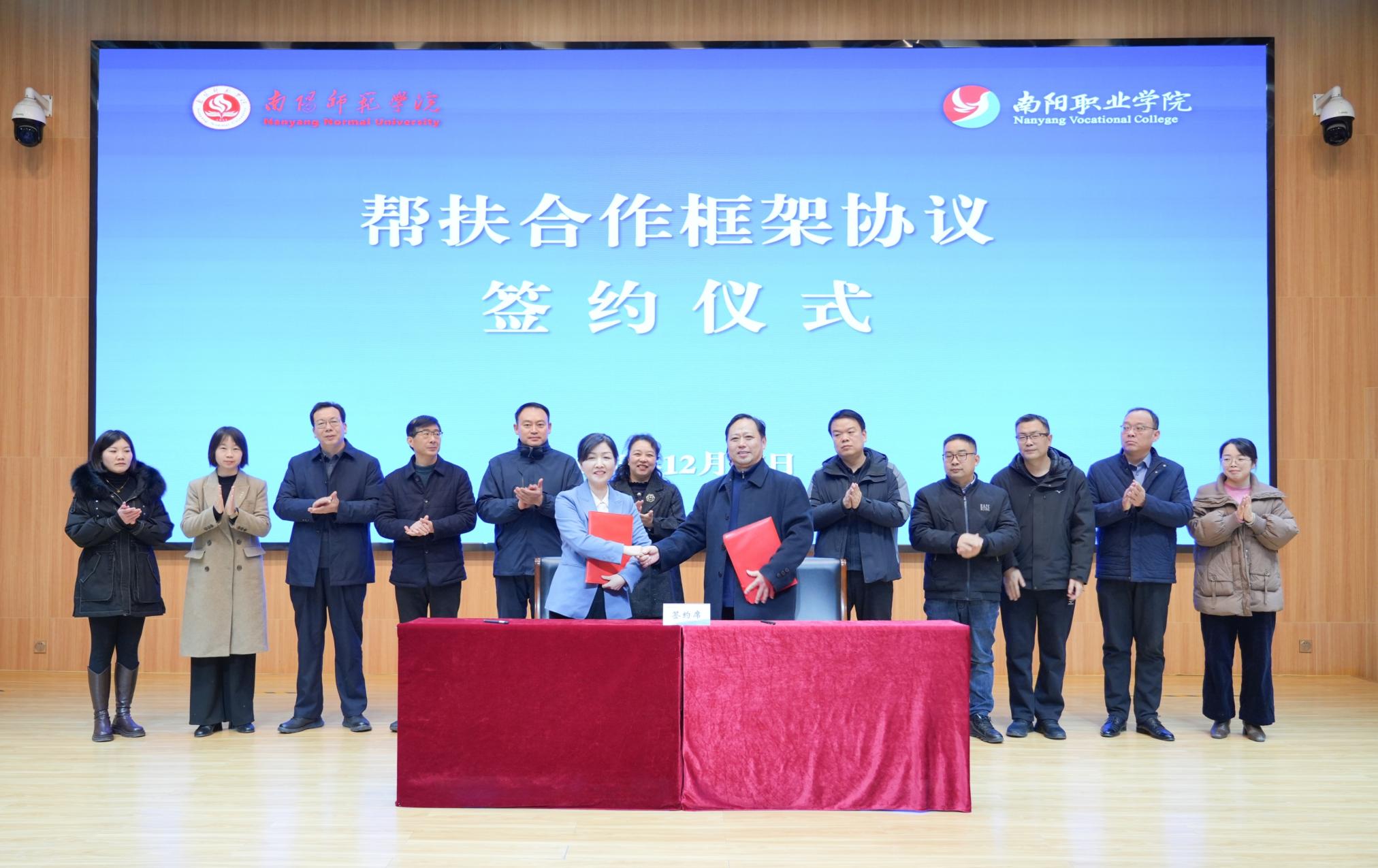 本网讯(通讯员 王典)12月27日,天游官网与南阳职业学院帮扶合作框架协议签约暨“南水北调中线工程水源地数字经济研究院和协同创新中心”授牌仪式在南阳职业学院举行。副校长王岩、南阳职业学院校长郭建生,天游官网国内合作处、校友工作办公室、创新创业学院、经济与管理学院、南水北调中线水源区水安全协同创新中心等单位负责同志参加。活动由南阳职业学院党委副书记任志强主持。
