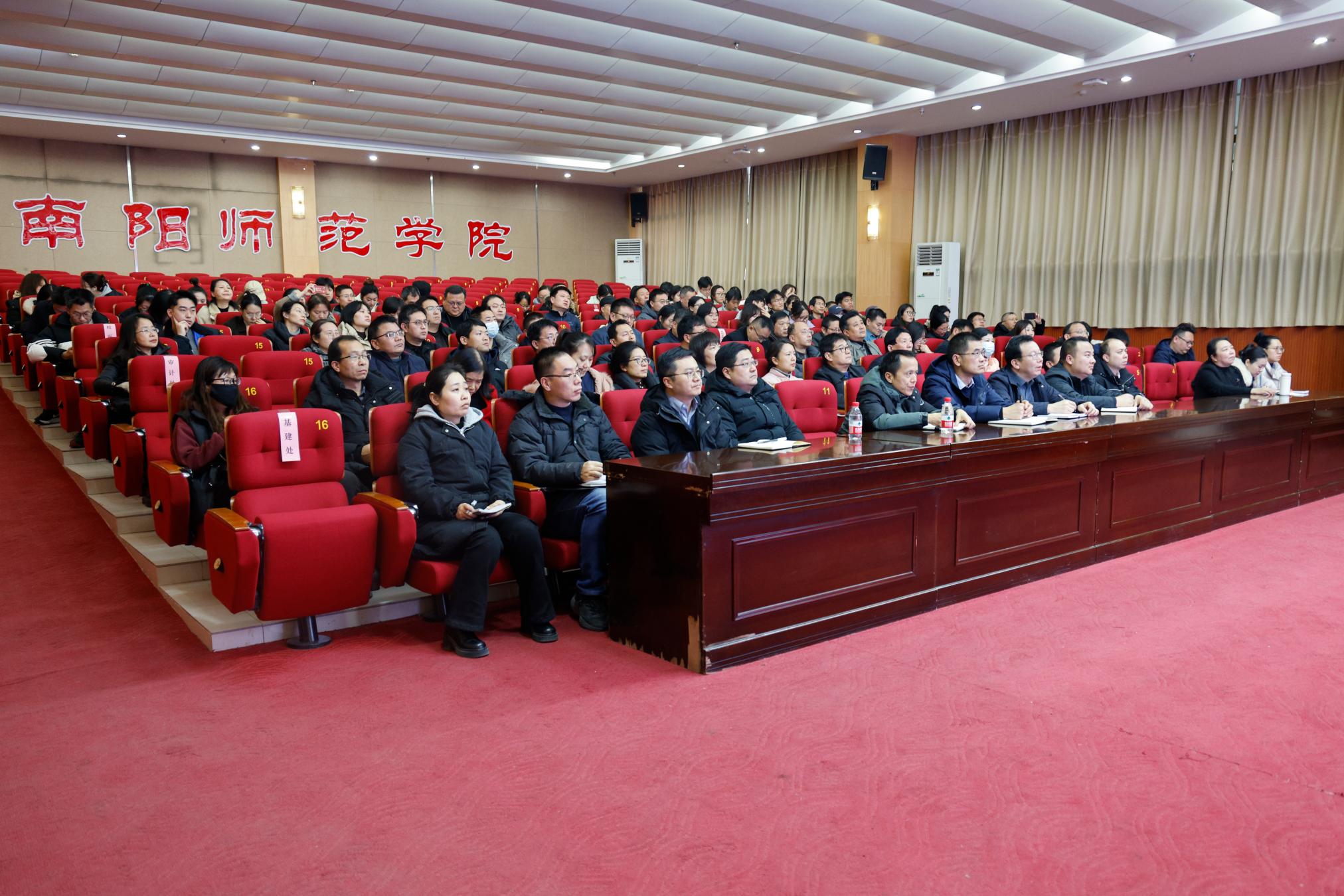 本网讯(王典/文 张锡哲/图)1月7日下午,副校长王岩在图书馆报告厅一楼作题为《学习贯彻党的二十届三中全会精神》和《拓展国际视野 深化改革创新 为推进河南高等教育发展献力献策——参加河南省加强高等院校校长队伍建设促进高校高质量发展赴新加坡专题研究班学习心得体会》的报告。国内合作处、审计处、基建处等10个分管部门和6个联系学院的领导班子、支部书记和师生代表参加此次报告会。会议由国内合作处处长杨洋主持。