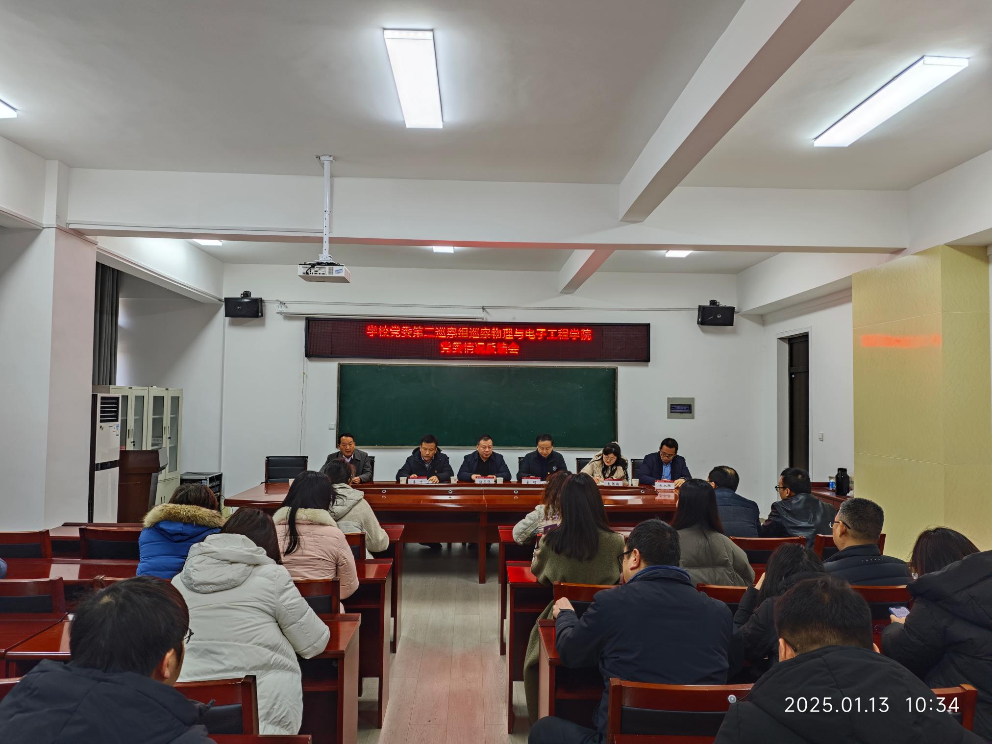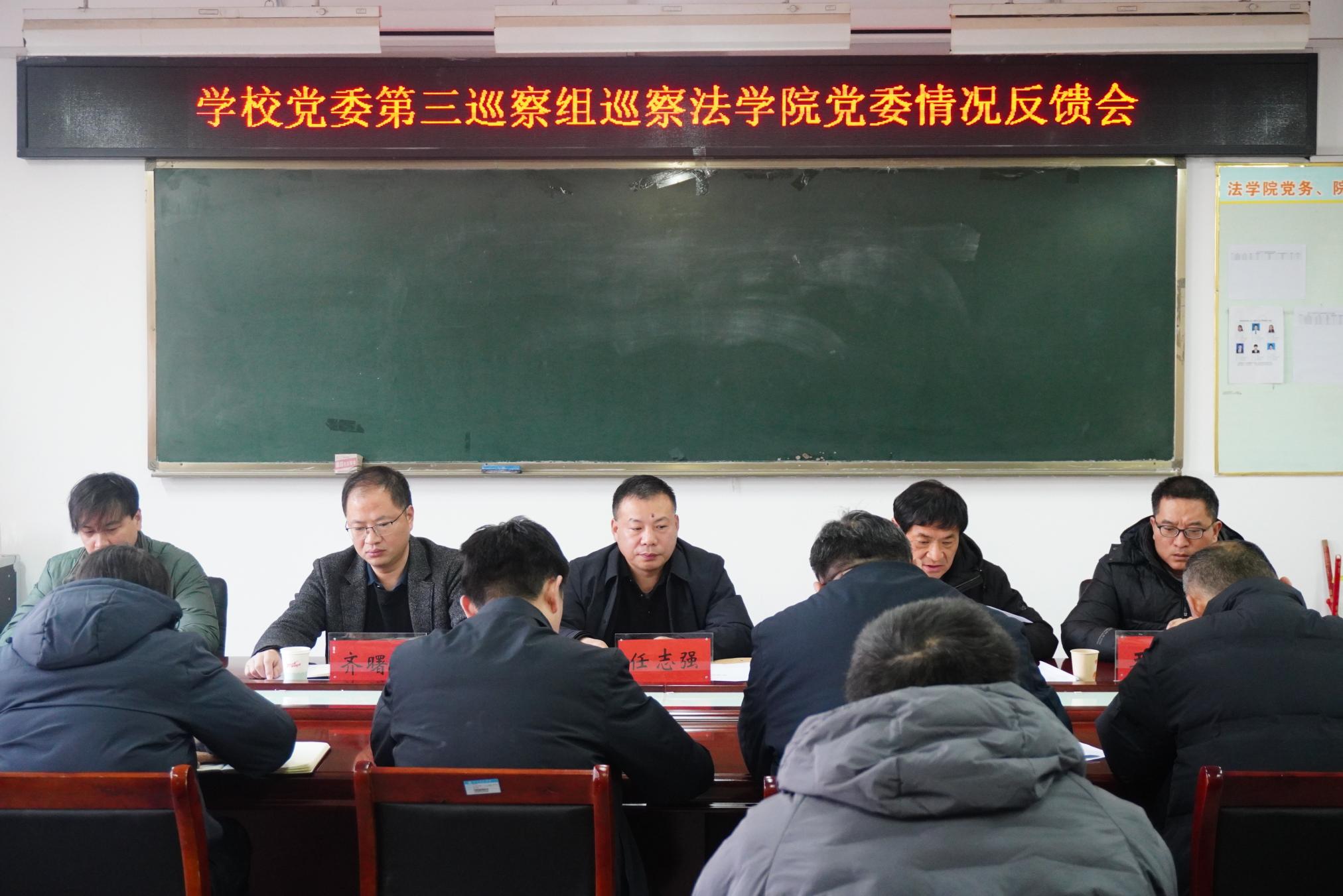 本网讯(通讯员 赵海洋)按照学校党委巡察工作部署,1月13-15日,第四轮校内巡察党委四个巡察组通过“一对一”反馈和集中反馈的方式,分别向教育科学学院党委、物理与电子工程学院党委、法学院党委、音乐学院党委进行了巡察情况反馈。