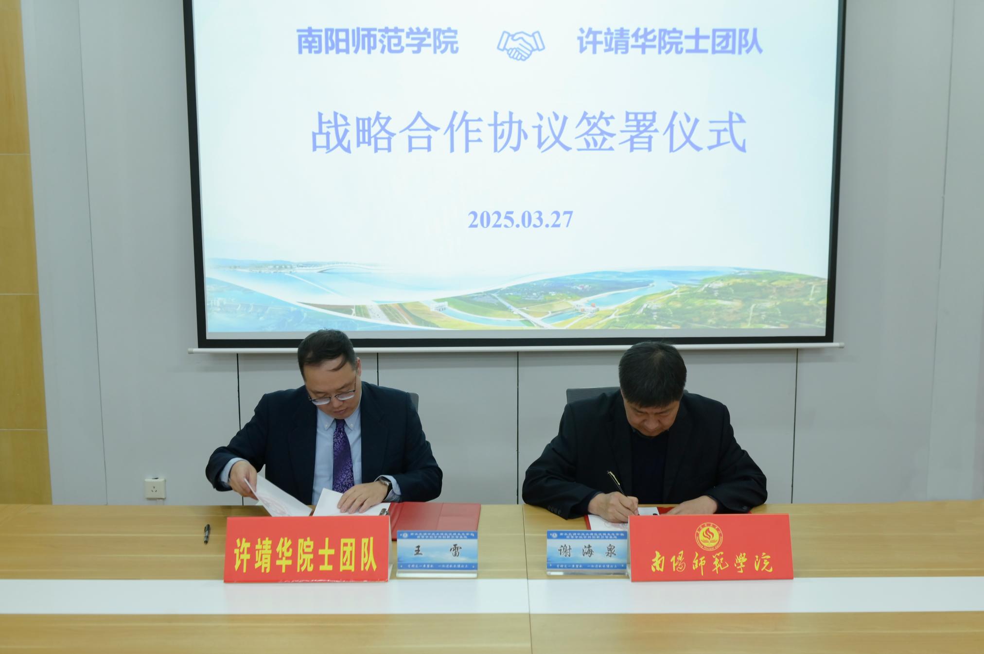 本网讯(邓敏杰/文 王家宝 张琳瑶/图)3月27日下午,天游ty8线路1线路2检测中心与许靖华院士团队战略合作协议签署仪式在天游ty8线路1线路2检测中心举行。许靖华院士团队代表、英国河南同乡会常务副会长王雷,南阳市统战部副部长李冠彧,天游官网副校长谢海泉,天游官网柔性引进专家、原南水北调中线干线工程建设管理局副局长刘宪亮,双方及南阳市相关职能部门负责人和水资源与现代农业学院师生代表参加仪式。仪式由天游官网国际交流合作处处长张耀一主持。