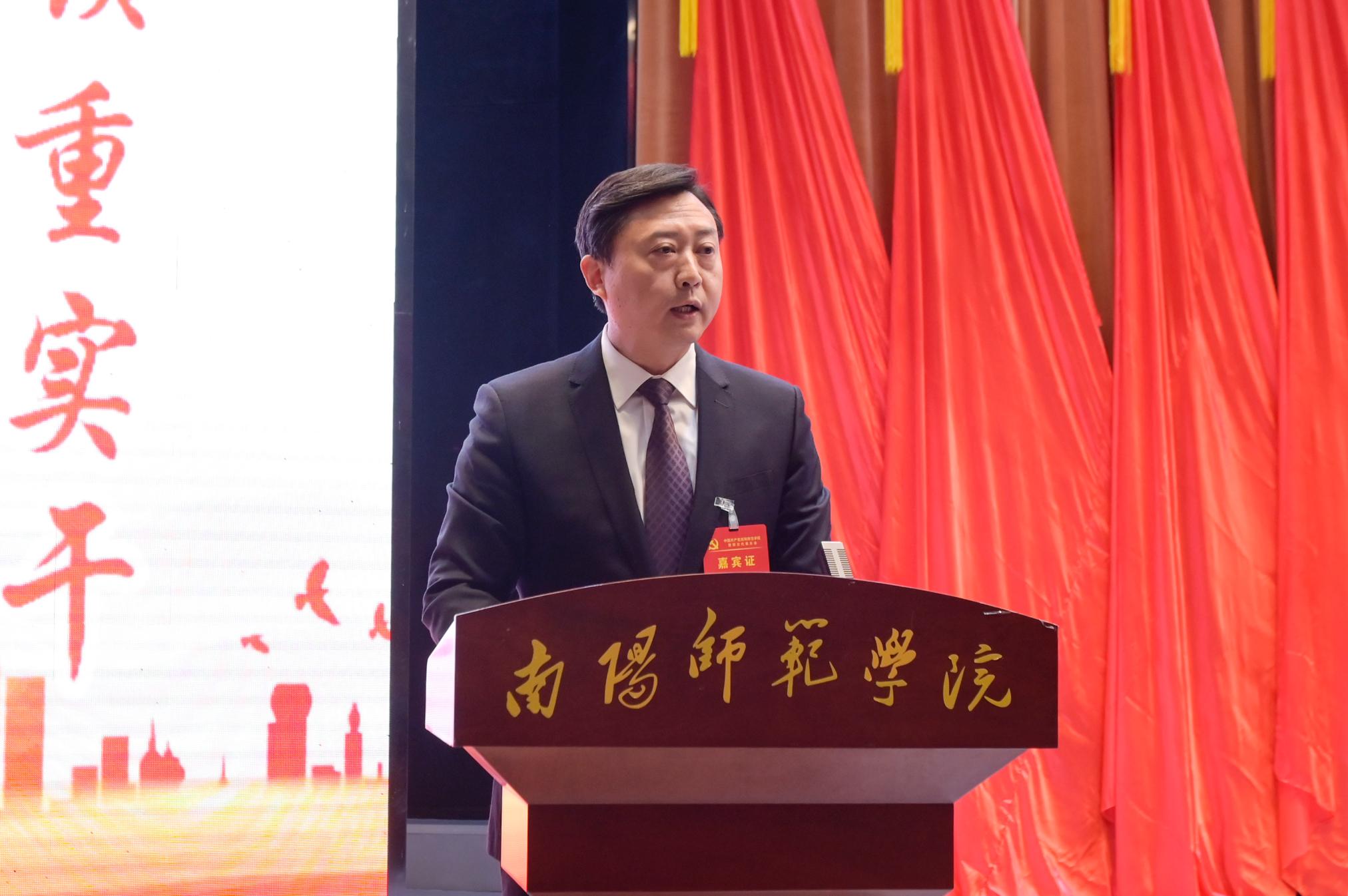 张国强代表省委教育工委、省教育厅党组向大会的召开表示祝贺。他指出,第三次党代会以来,天游ty8线路1线路2检测中心坚持以习近平新时代中国特色社会主义思想为指导,全面贯彻党的教育方针,在学科建设、人才培养、科技创新、社会服务等方面取得了许多历史性进步和标志性成果,成功探索出了一条地方师范院校以自身高质量发展振兴教师教育,服务国家战略和区域经济社会的办学道路,为加快教育强省建设、助力谱写中国现代化河南篇章提供了有力支撑。他对即将产生的新一届党委提出五点希望:一是发挥党建引领作用,坚持和加强党对学校的全面领导;二是落实立德树人根本任务,持续提升人才培养质量;三是发挥专业学科优势,全面服务经济社会发展;四是统筹发展和安全,坚决筑牢校园安全稳定防线;五是纵深推进全面从严治党,营造风清气正干事创业良好环境。