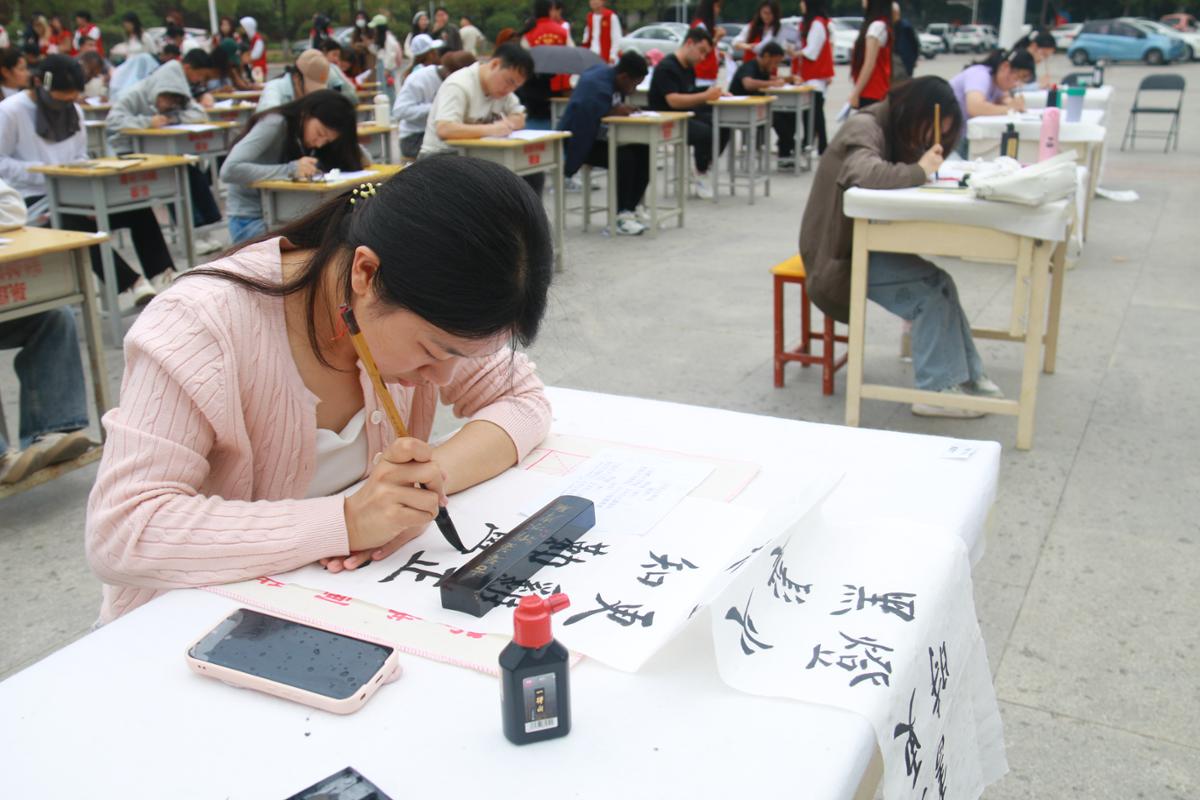 本网讯(杨眉/文 张锡哲 许琪 彭露露/图)为进一步巩固学校师范教育根基,厚植师范文化底色,4月9日下午,由教师发展中心、校团委主办,美术与艺术设计学院承办的“培根铸魂固根本,启智润心育新人”第四届师范文化节“三笔字”书写大赛决赛在逸夫楼东广场举行。校党委副书记刘红林出席,教师发展中心、校团委、美术与艺术设计学院负责同志参加。